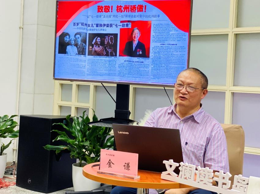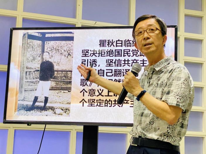分享嘉宾金谦曾经是一名电气工程师,退休以后致力于中共党史学习研究,现为浙江省新四军历史研究会会员。他从两段视频开始,讲述了赓续红色基因的革命先烈后代瞿独伊的故事。瞿独伊1921年出生于浙江萧山,是杨之华与沈剑龙的女儿,原名沈独伊。1923年,杨之华到上海大学求学,认识了瞿秋白、向警予以及瞿秋白的妻子王剑虹等人。受他们的影响,杨之华积极参加妇女运动、工人运动,并在瞿秋白、向警予的介绍下,加入中国共产党。1924年7月,王剑虹因患肺病逝世。当年11月,杨之华与沈剑龙离婚,与瞿秋白结婚,并将女儿改名为瞿独伊。1928年至1941年,瞿独伊与母亲在苏联生活。1941年回国时,瞿独伊与母亲都被新疆军阀盛世才囚禁,1946年才被营救获释。回国后的瞿独伊被分配到新华社工作。开国大典上,她曾用俄语向全世界播出毛主席的讲话。之后她作为我国第一批驻外记者赴莫斯科工作,期间多次担任周恩来总理和中国访苏代表团的翻译。