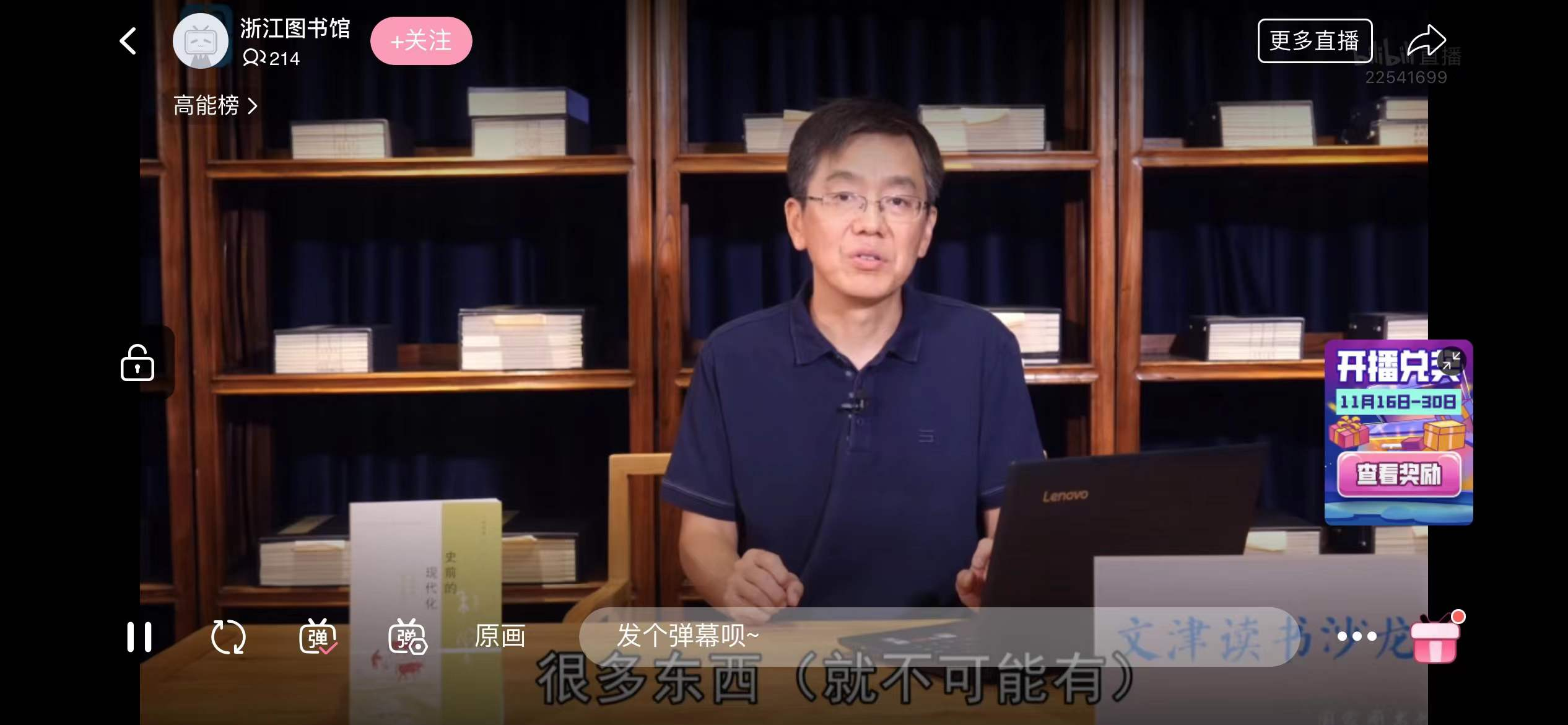 11月21日晚上,浙江图书馆b站官方账号播放了第十六届文津图书奖专题系列专题讲座《史前的现代化——溯源中国文明的经济根基》。本次讲座的主讲嘉宾是邀请了中国人民大学教授、博士生导师陈胜前。浙江图书馆的读者在陈老师的带领下共同领略考古的独特魅力。