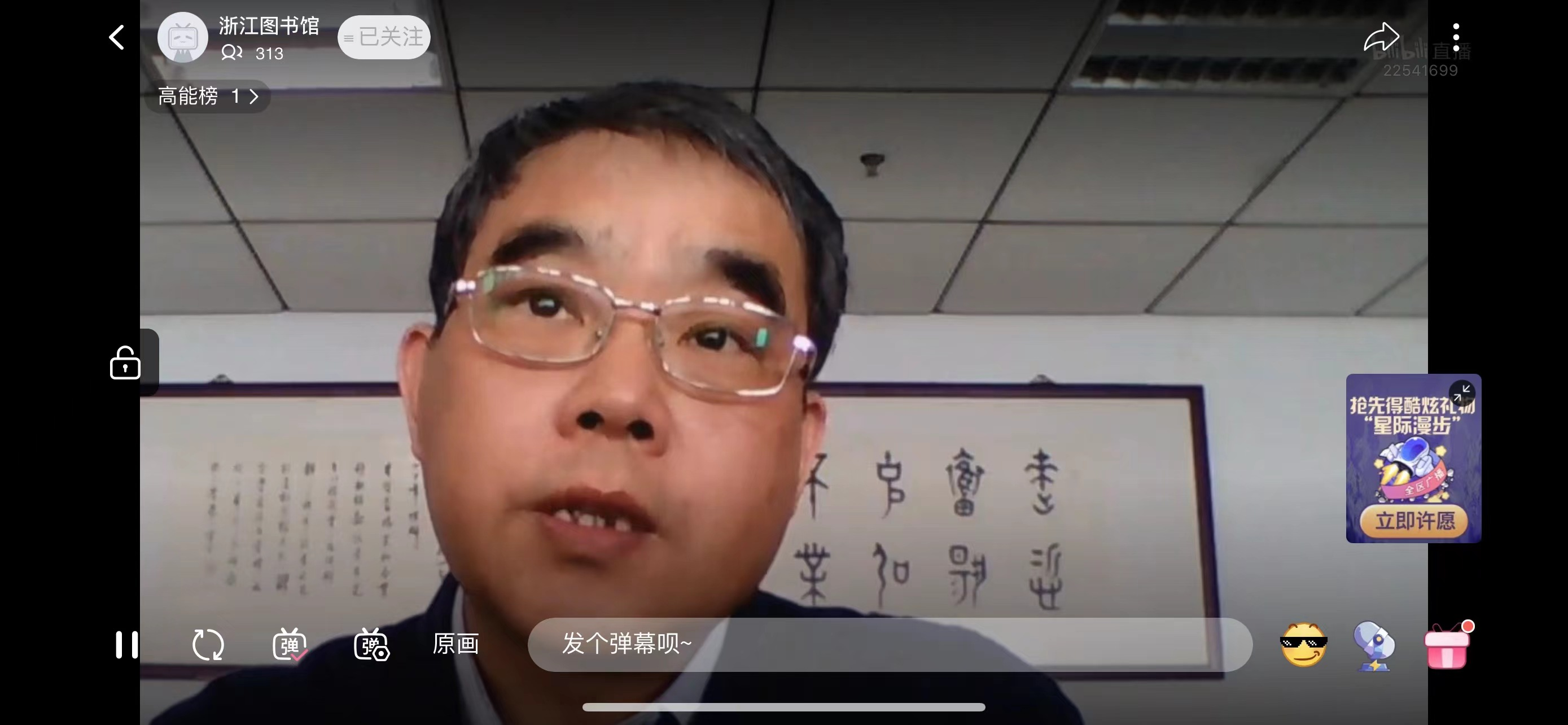 1月9日下午,山东大学儒学高等研究院教授宋开玉做客文澜讲坛,在浙江图书馆B站官方账号为读者带来线上主题讲座《藻镜留连客,江山憔悴人——谈谈杜甫的《咏怀古迹五首》》。