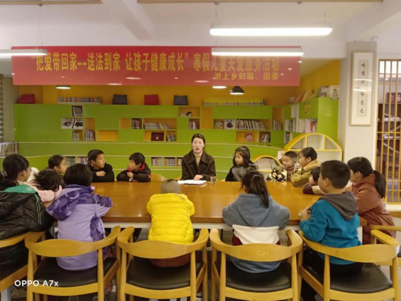 2022年1月22日,浙江图书馆淤上村服务点“芸洲书屋”开展“把爱带回家——送法到家,让孩子们健康成长”2022寒假关爱服务活动。