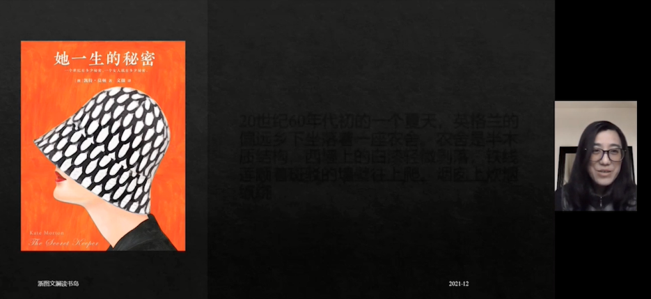 外企员工陈分享的是澳大利亚作家凯特·莫顿的小说《她一生的秘密》。她认为,这是一本不可多得的悬疑推理小说,也是一本温馨的家庭生活小说。里面有爱情、亲情,也带给我们很多思考,比如人生观价值观对人的影响,原生家庭的影响,对待人生不幸该如何应对等等。
