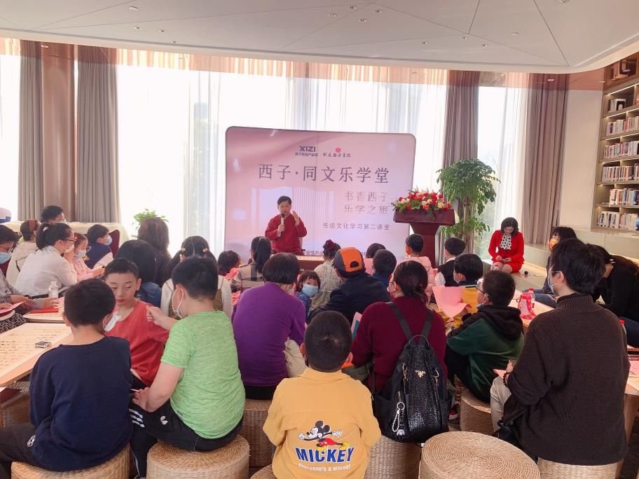 2022年3月12日下午,浙江图书馆文澜书屋(西子智慧产业园)举办“西子·同文乐学堂”启动仪式暨第一期经典文化分享会。浙江图书馆馆长褚树青、上城区政协副主席范国良等有关部门领导出席,来自全市的25组亲子家庭参加了本次活动。