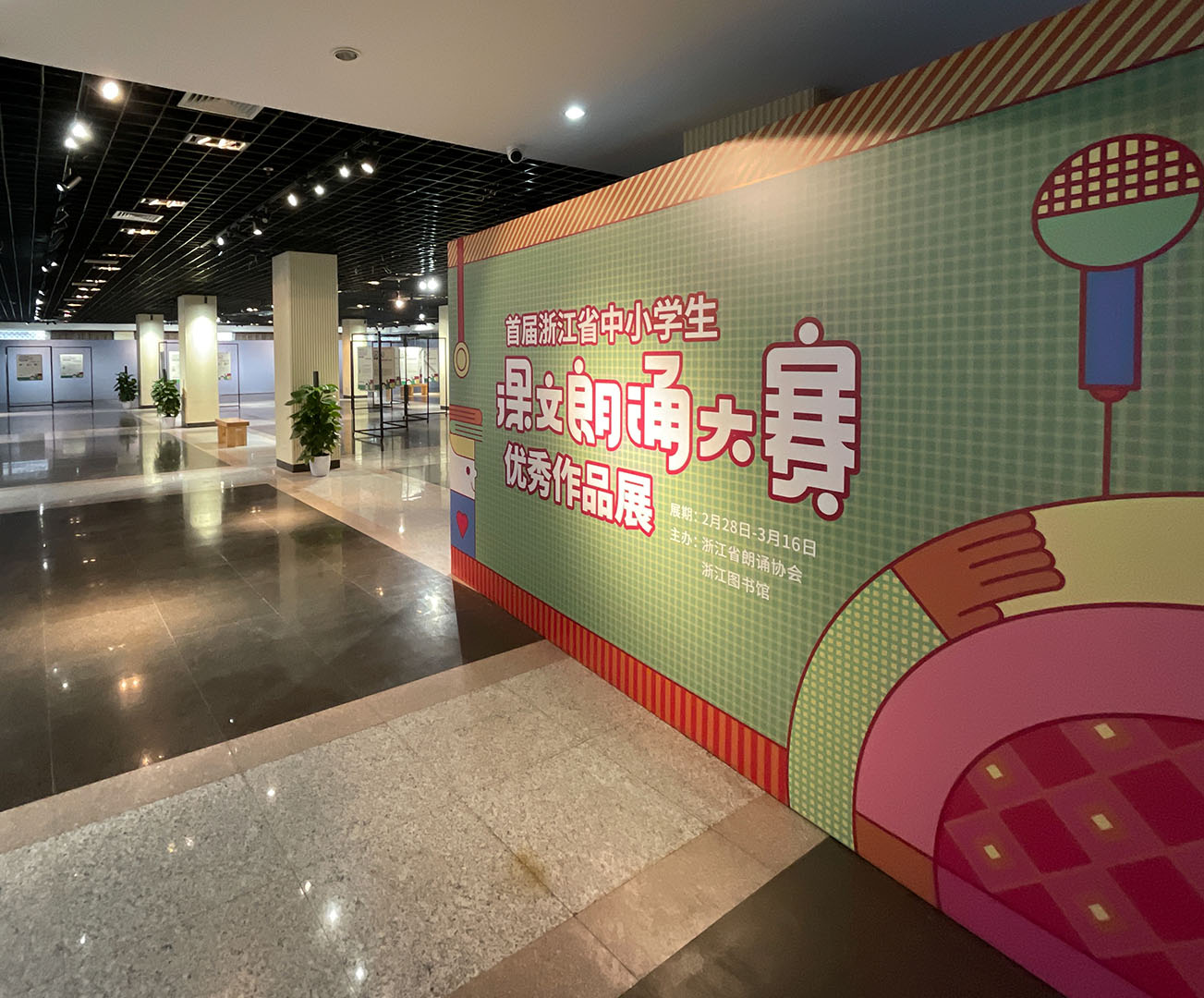 2月28日至3月16日,由浙江省朗诵协会、浙江图书馆主办的“首届浙江省中小学生课文朗诵大赛优秀作品展” 在浙江图书馆展出,展览内容包括了获得了一等奖的69个优秀作品。本次大赛及展览,旨在引导中小学生用语言艺术诠释中华优秀传统文化,提升语言文字应用能力,全面激发学习语文的兴趣,提高语文素养、阅读能力和语言表达能力。