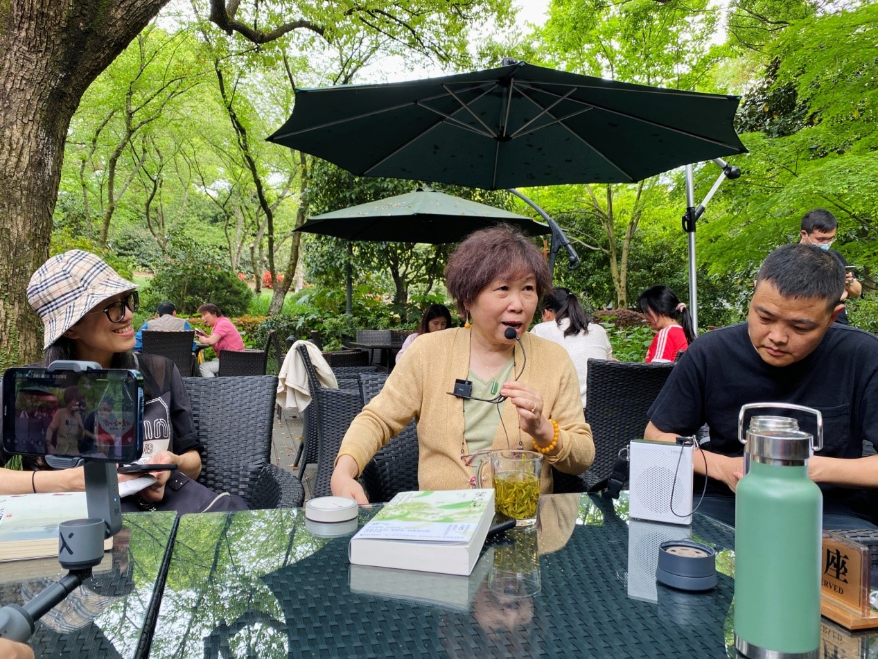 《茶人三部曲》具有浓郁的杭州地域文化色彩,书中写到很多杭州地名和杭州历史掌故,不了解这些地名和掌故,便无法全部读懂这部“最杭州”的长篇小说。浙江图书馆与浙江文艺出版社联合举办《茶人三部曲》走读活动。带领读者从杭州植物园玉泉观鱼出发,经过浙江医院灵隐院区、双峰插云、艺人盖叫天之墓,最后到达中国茶叶博物馆双峰馆区。走读活动邀请到《茶人三部曲》作者王旭烽,由浙江文艺出版社编辑谢园园带队沿着《茶人三部曲》里杭家几代人走过的足迹,一路讲述杭州的老故事,解读《茶人三部曲》。
