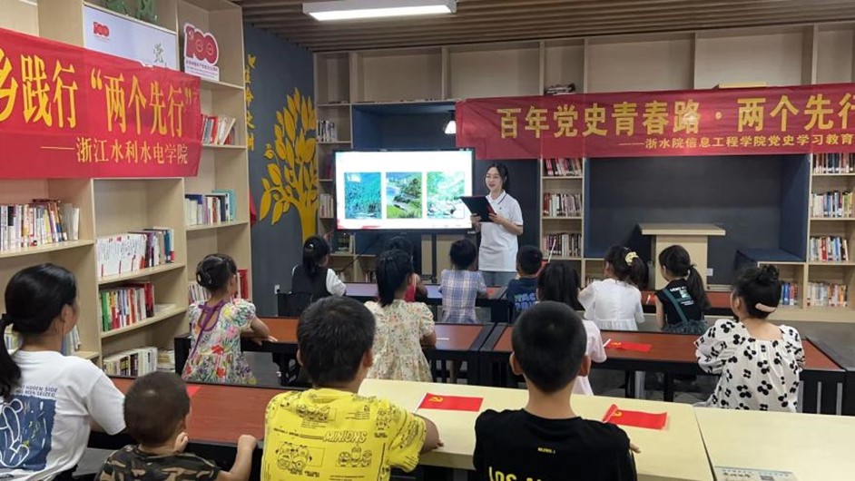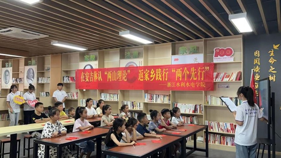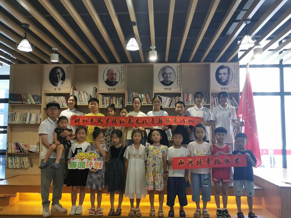 2022年7月13日,浙江图书馆天荒坪服务点组织开展“讲述红色故事 传承红色文化”暑期雏鹰活动。来自安吉县天荒坪镇的孩子们、浙江水利水电学院志愿者和山河村幸福邻里中心工作人员共计二十余人参加活动。