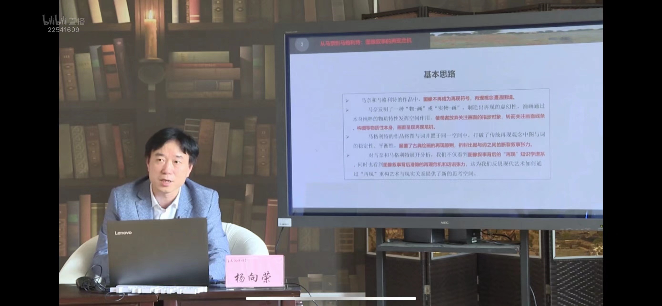 本周六晚,文澜讲坛第1136期在B站浙江图书馆官方账号准时开播。本期讲座邀请了杭州师范大学人文学院杨向荣教授担任主讲嘉宾,为大家带来了主题讲座《从马奈到马格利特:图像叙事的“再现”危机》。