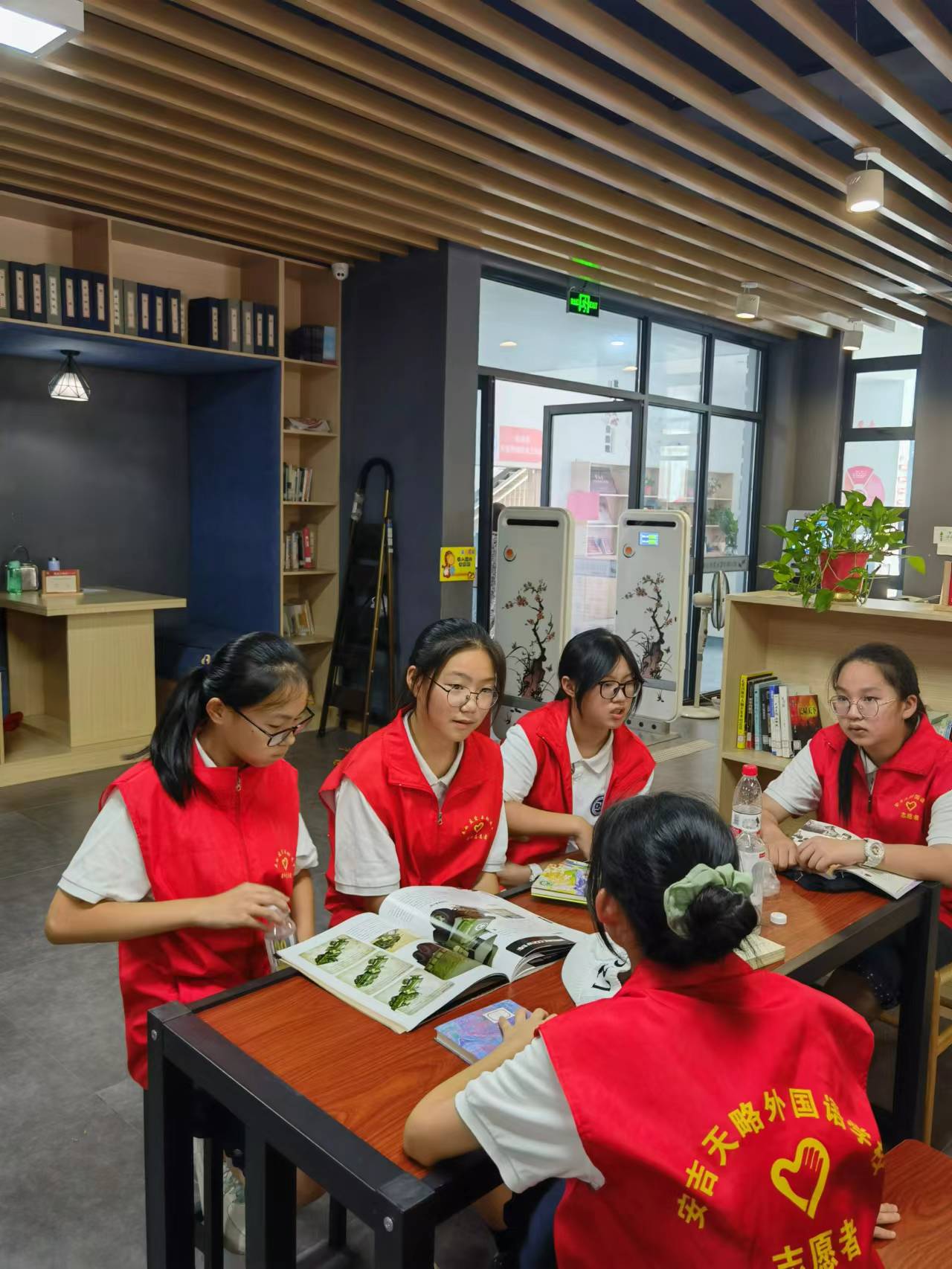 本次活动以“争做‘小小书香大使’”为分主题,同学们来到了山河村幸福邻里中心的天荒坪服务点。