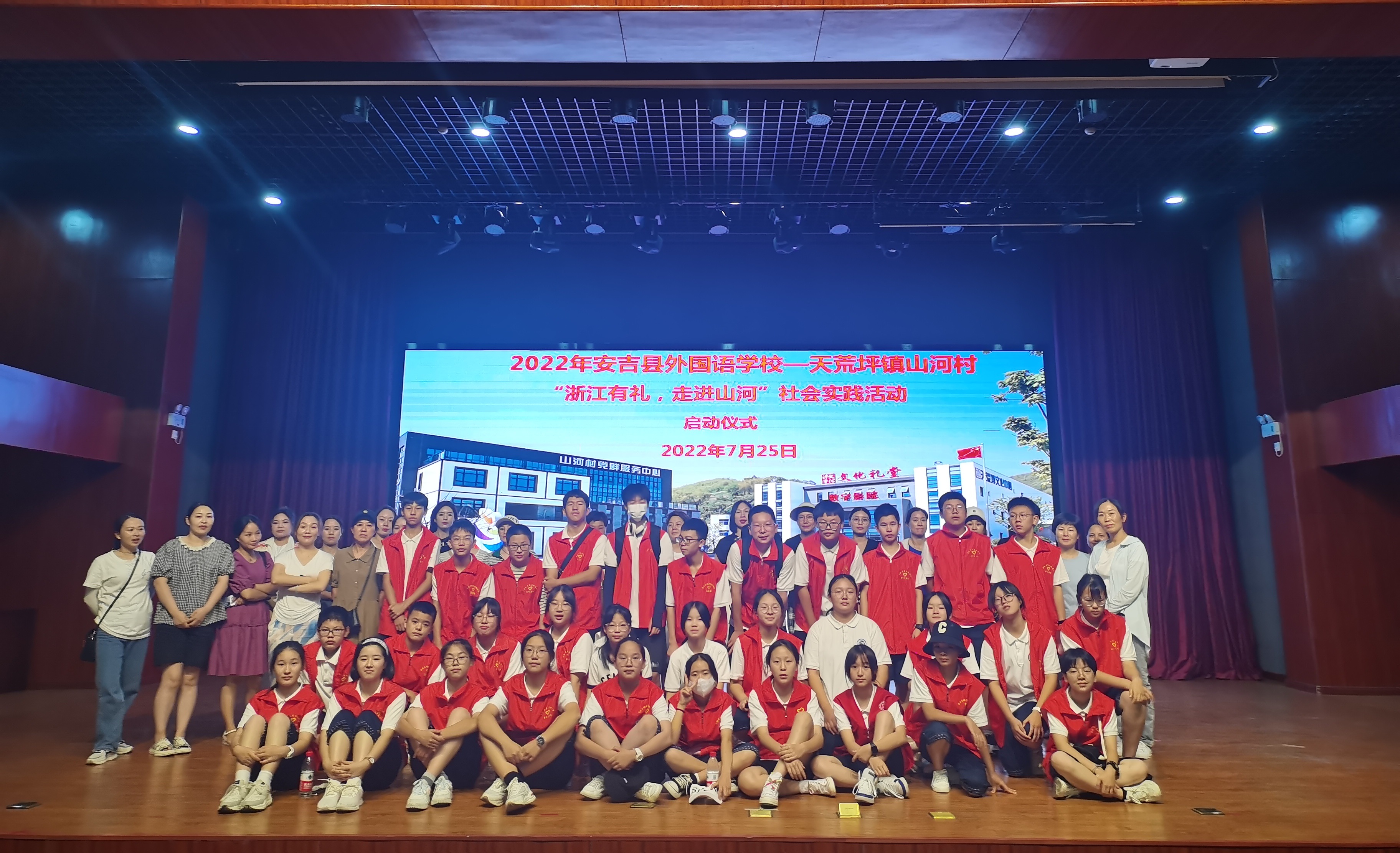 2022年7月25日,浙江图书馆天荒坪服务点开展“浙江有礼 走进山河”系列暑期社会实践活动。来自安吉县外国语学校的师生、家长和山河村幸福邻里中心工作人员共计五十余人参加活动。