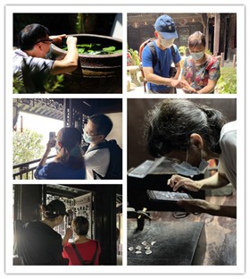 在浙图视障工作人员方洁的带领下,视障者和志愿者们一行20人参观了中药博物馆,随着胡庆余堂讲解员的讲述,深入了解了胡庆余堂的百年历史及企业文化,近距离接触了传统制药技艺。之后,视障学员在志愿者手把手的教授下,对这些古老的建筑群进行拍摄。