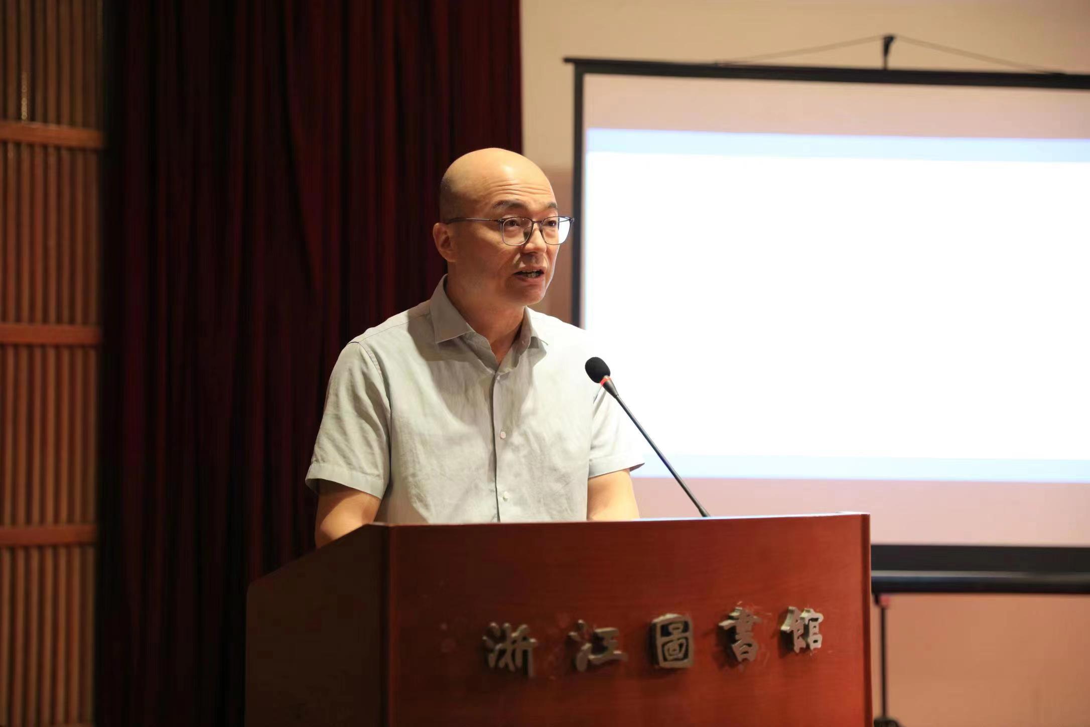 胡海荣代表浙江图书馆对出席此次协议交换仪式的领导嘉宾表示衷心感谢和热烈欢迎。浙江图书馆是省级公益性公共图书馆,普及文化知识、科学知识是浙图的责任。浙图将与合作多年并拥有众多各领域专家学者的民盟科普讲师团一起以“科普生活 共富浙江”为指引,结成战略合作伙伴关系,共同为线上210多万读者,为线下近1.5万家公共图书馆、农村文化礼堂和城市书房的读者提供讲座知识服务,共同推进科学普及,助推公共文化服务提质增效,着力推进全域文化繁荣全民精神富有。