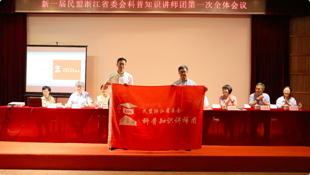 民盟浙江省委会一直秉承“奔走国是关注民生”的优良传统,注重发挥界别特色,发扬民盟人才荟萃、智力密集的优势,开展了一系列社会服务活动,取得了良好的社会效应。浙江民盟科普知识讲师团是民盟浙江省委会领导下,运用盟员的知识和技能,面向基层和社会,开展自然科学、人文社会科学等知识普及、宣传、教育的内设机构。仪式上还举行了第十三届科普知识讲师团第一次全体会议。审议《民盟浙江省委会科普知识讲师团章程》,宣读科普讲师团领导班子成员、副秘书长、组长副组长任命文件和第一批团员名单。浙江省政协副秘书长、民盟省委会专职副主委毛伟民向新一届科普讲师团团长叶辉授团旗。