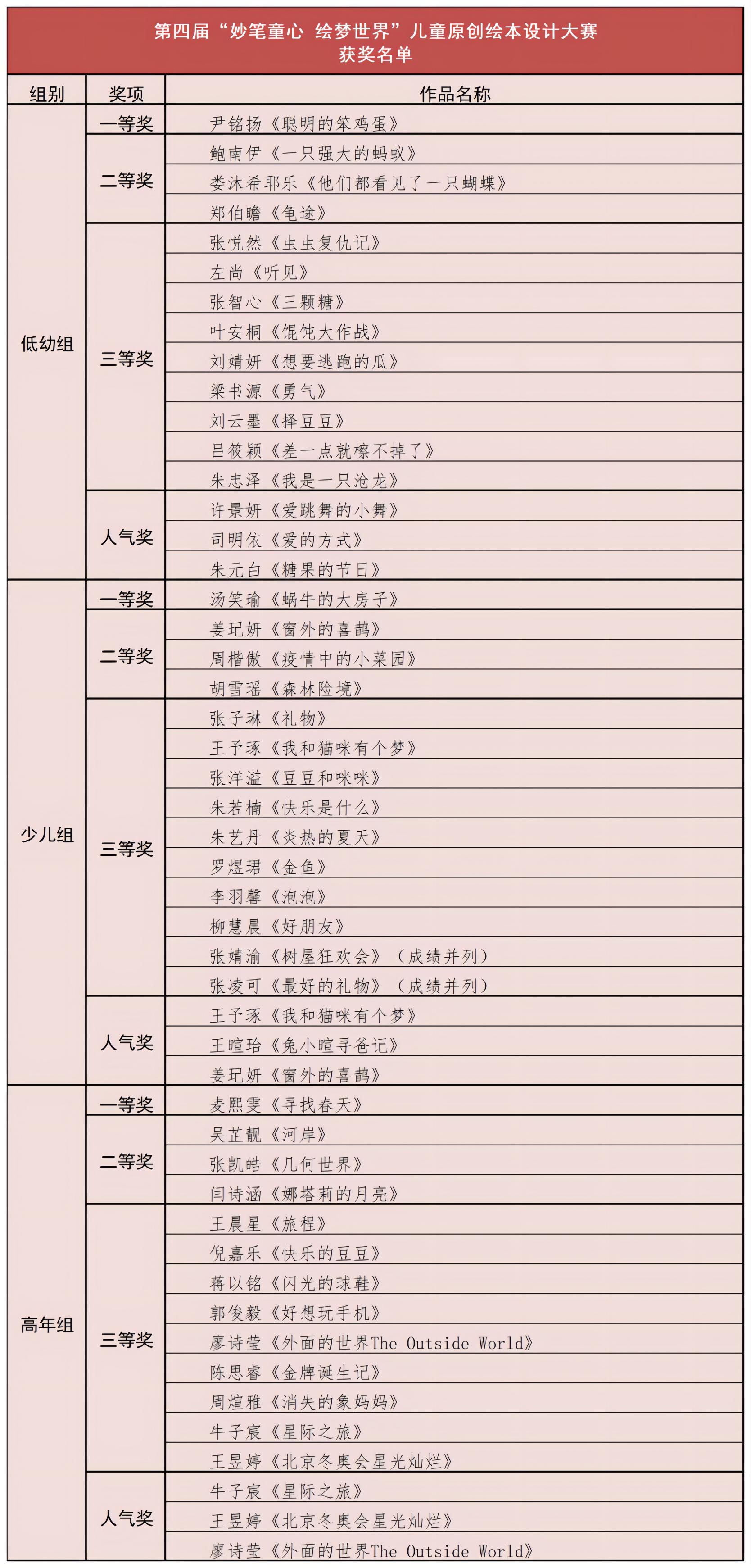 由浙江图书馆、浙江少儿阅读联盟主办、杭州悠贝亲子图书馆、美院堡美术教育、上海书舟信息、浙江博学易知信息技术协办的第四届“妙笔童心绘梦世界”2022儿童原创绘本设计大赛,近日已圆满结束!
