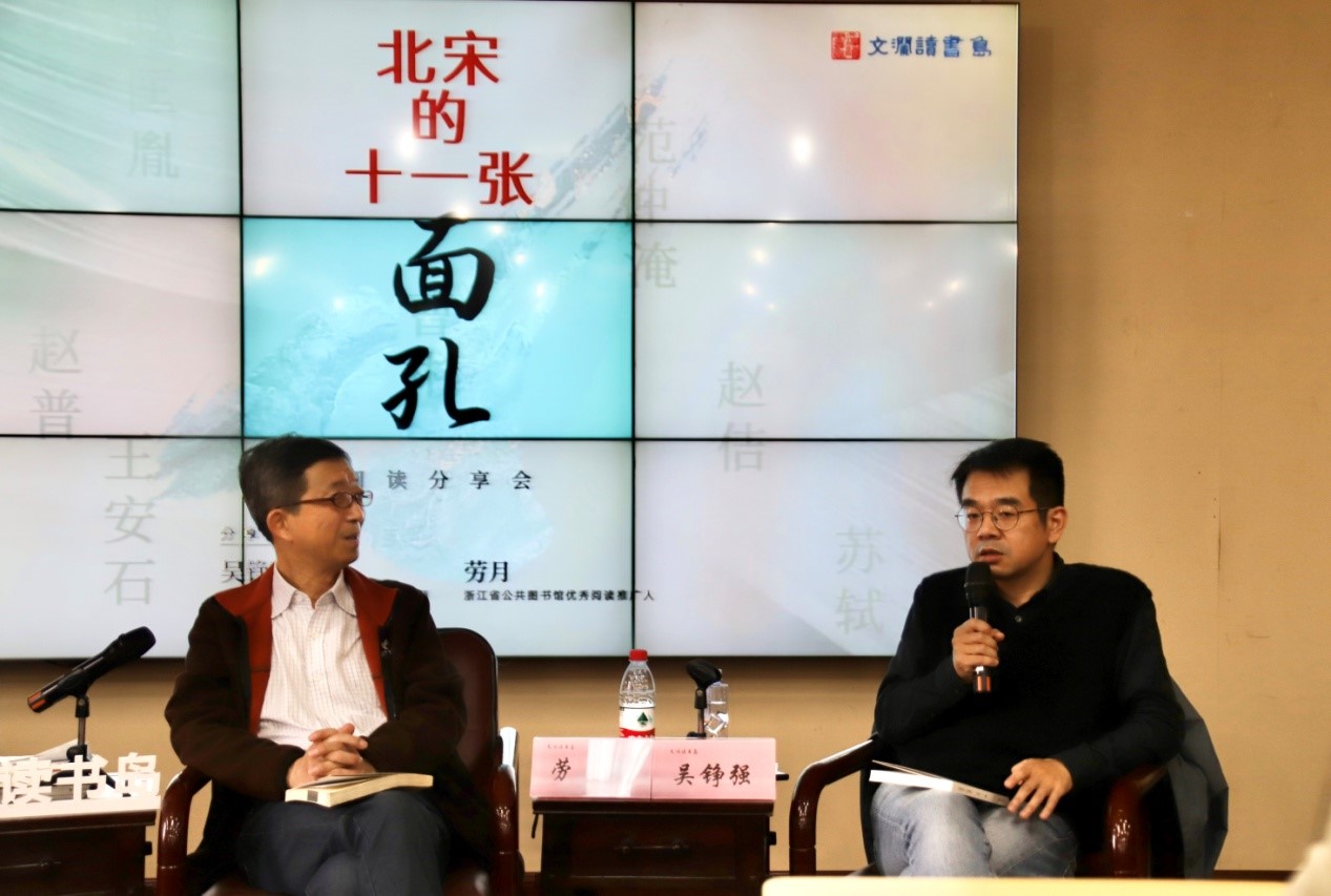 11月19日下午,文澜读书岛《北宋的十一张面孔》阅读分享会邀请到这本书的作者,浙江大学历史系教授吴铮强老师,分享关于宋朝的故事。《北宋的十一张面孔》是浙江大学历史系教授吴铮强完成于2009年的作品,也是他第一次尝试用通俗方法写历史。吴教授文笔功底深厚,语言幽默风趣,叙事精炼流畅,情节引人入胜,为读者展示了有趣的北宋和十一张有趣的面孔。