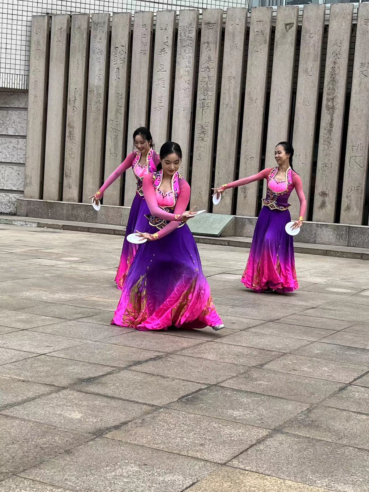 11月9日,同样是来自舞蹈学院的同学,不同的是他们穿着独特的服装,一支支伴着书香而起的中国舞在浙图上演。这里有维吾尔族舞蹈、傣族舞蹈、古典舞蹈、中国传统民间舞蹈等等,也许是大部分人对中国传统舞蹈并不了解,所以在周围不管男女老少,大家都愿意在进出馆区的时候略微驻足观赏一番这些难得一见的舞蹈,一支支传统舞蹈在浙图走进了大众的视野中。