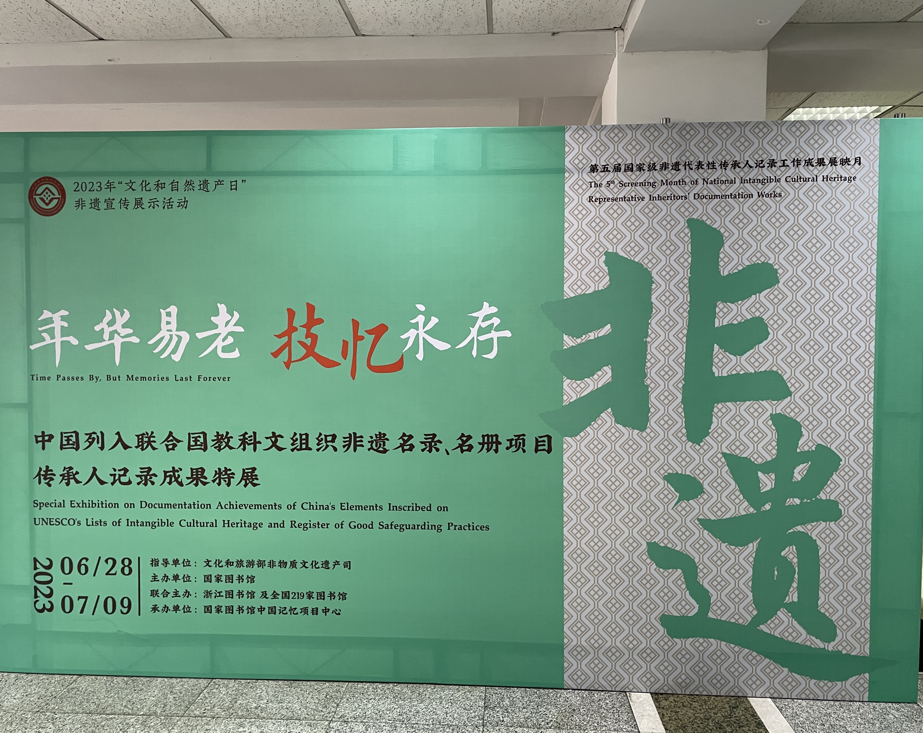 在文化和旅游部非物质文化遗产司指导下,国家图书馆主办,浙江图书馆及全国219家各级各类图书馆进行联展联映的“年华易老,技·忆永存——第五届国家级非物质文化遗产代表性传承人记录工作成果展映月暨中国列入联合国教科文组织非物质文化遗产名录、名册项目传承人记录成果特展”于6月28日至7月9日在浙江图书馆展出。