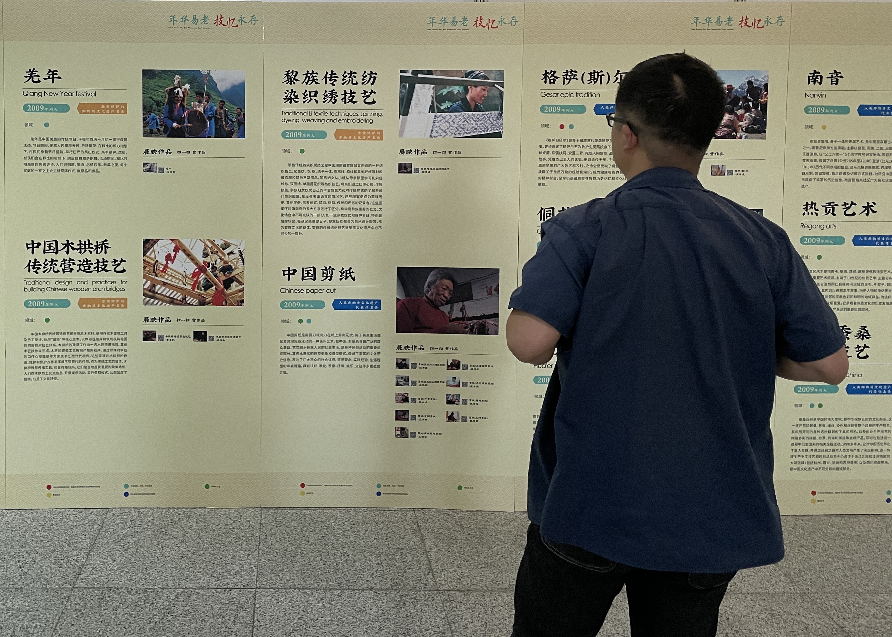 特展聚焦“人类遗产,中国智慧”“建档记录,履约实践”两大主题,依托近年来我国非遗记录工程——国家级非遗代表性传承人记录工作取得的成果,回顾20余年来我国的申遗历程,梳理我国20年来在非遗保护建档记录方面的履约成果,展示中国列入联合国教科文组织非遗名录、名册的43个项目(68部影片)的独特魅力和保护传承取得的可喜进展。其中浙江有10位非遗传承人入展,涉及昆曲、古琴、剪纸、丝织、青瓷、二十四节气、龙井茶、木拱桥、木活字等多项技艺。