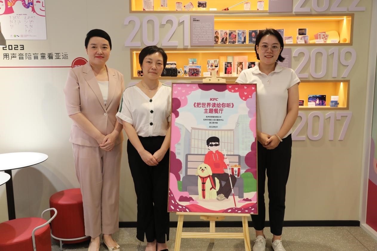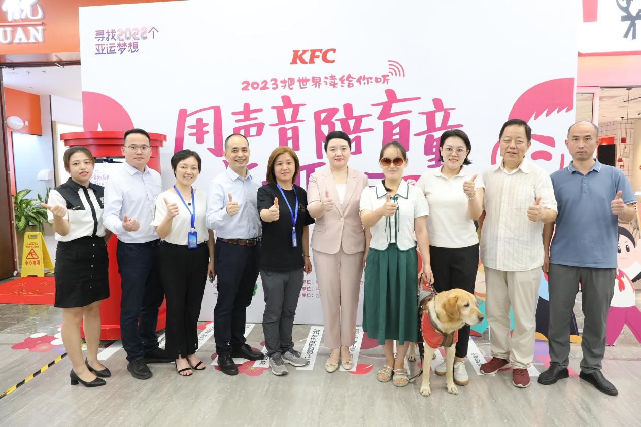 9月7日下午,“把世界读给你听”主题餐厅——肯德基之江文化中心店揭幕。揭幕当天由视障人群、“捐声”活动获奖者、特邀嘉宾、杭州市残疾人综合服务中心、浙江图书馆、肯德基相关领导和工作人员及各界媒体50余人共同参与。主题餐厅的落成是第六届“把世界读给你听”大型公益活动中的重要一环,也是浙江图书馆携手企业践行公益道路上的又一里程碑。