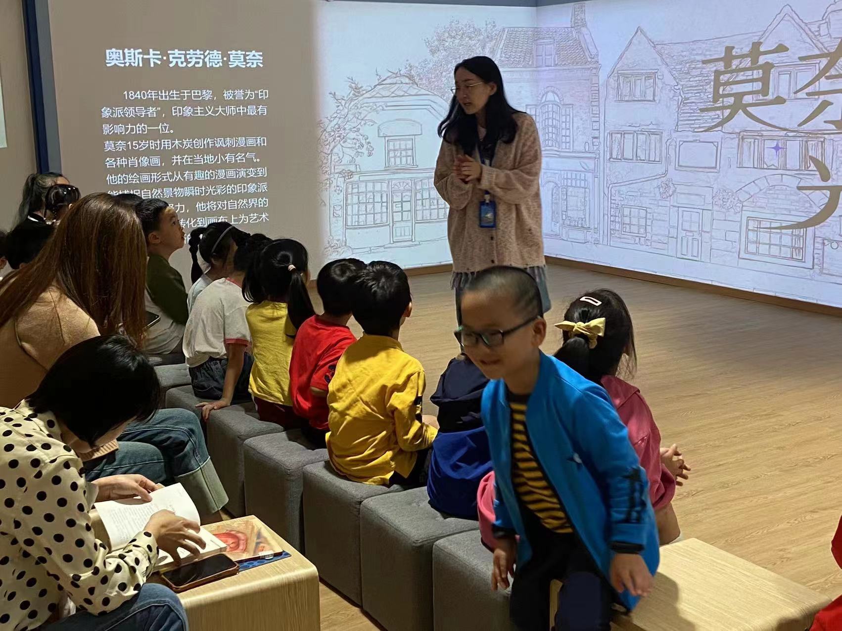 其中,《莫奈的光影世界》面向8岁以上儿童,以20米互动宽屏,展示莫奈近百幅传世之作,将莫奈的生平趣事作为线索开展讲解与画作欣赏,让参与的家长与孩子共同欣赏莫奈的构图技法,了解画作背后的艺术精神。