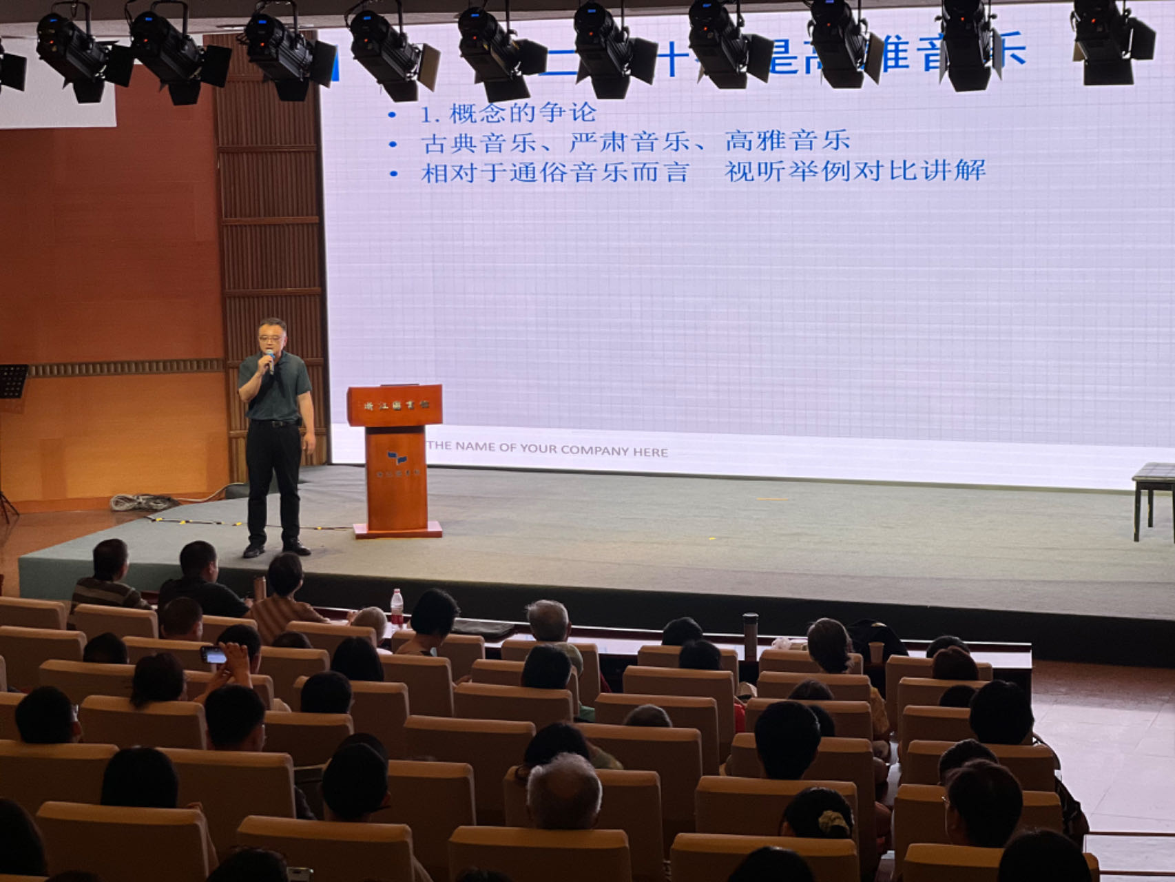 7月8日浙江音乐学院教授,硕士研究生导师,陈沛老师在浙江图书馆二楼报告厅举办了一场文澜讲坛:“揭开高雅音乐神秘的面纱——中外经典歌曲导聆”的讲座。