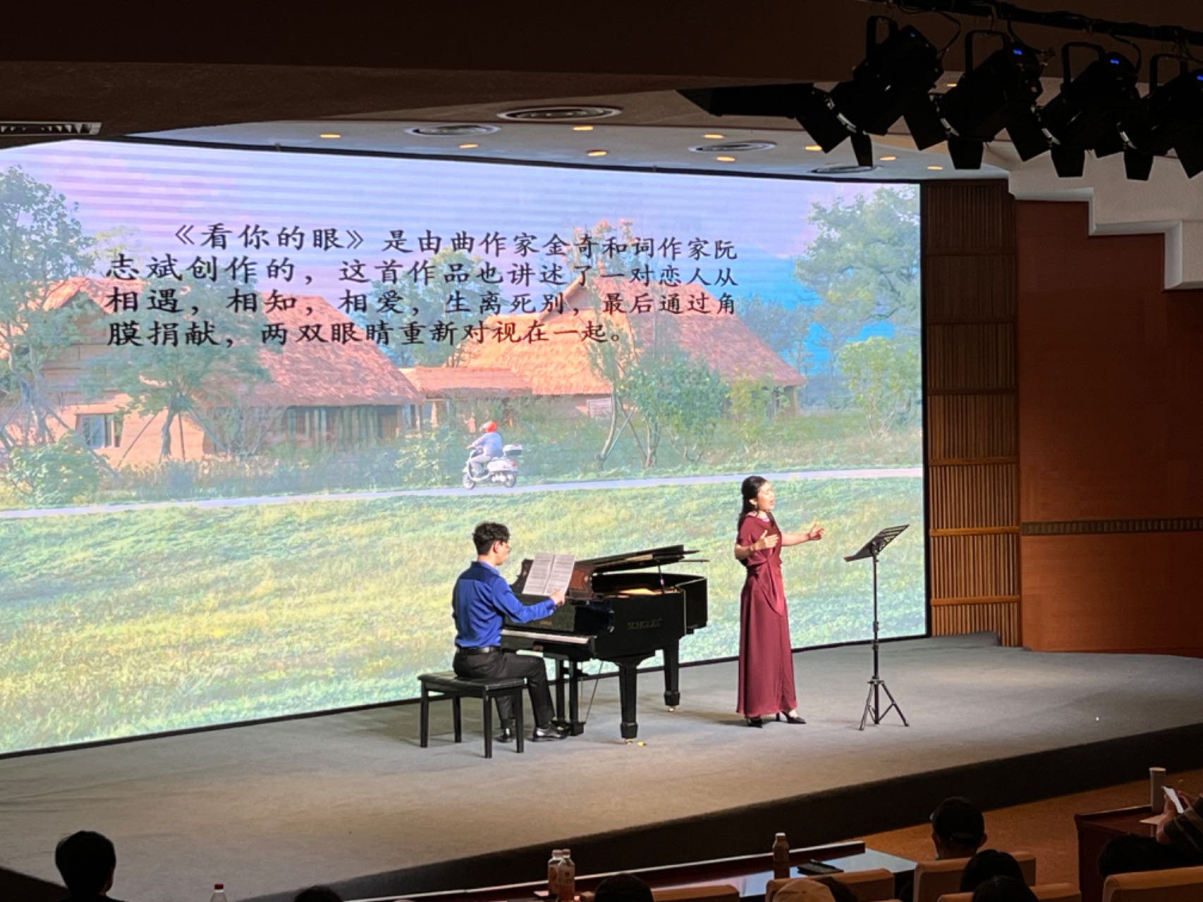 随着讲座的结束,由浙江音乐学院,方香蕾老师与她的学生团队,为现场观众带来“领航梦想 唱响亚运”——方香蕾师生中外经典歌曲音乐会。本音乐会精选多种不同风格的音乐元素曲目组成,通过不同音乐流派、演唱方式方法及表现形式的呈现,听者来到音乐会现场,欣赏各种类型的音乐,沉浸式体现,感知中外音乐的魅力,放松身心,享受美好音乐。