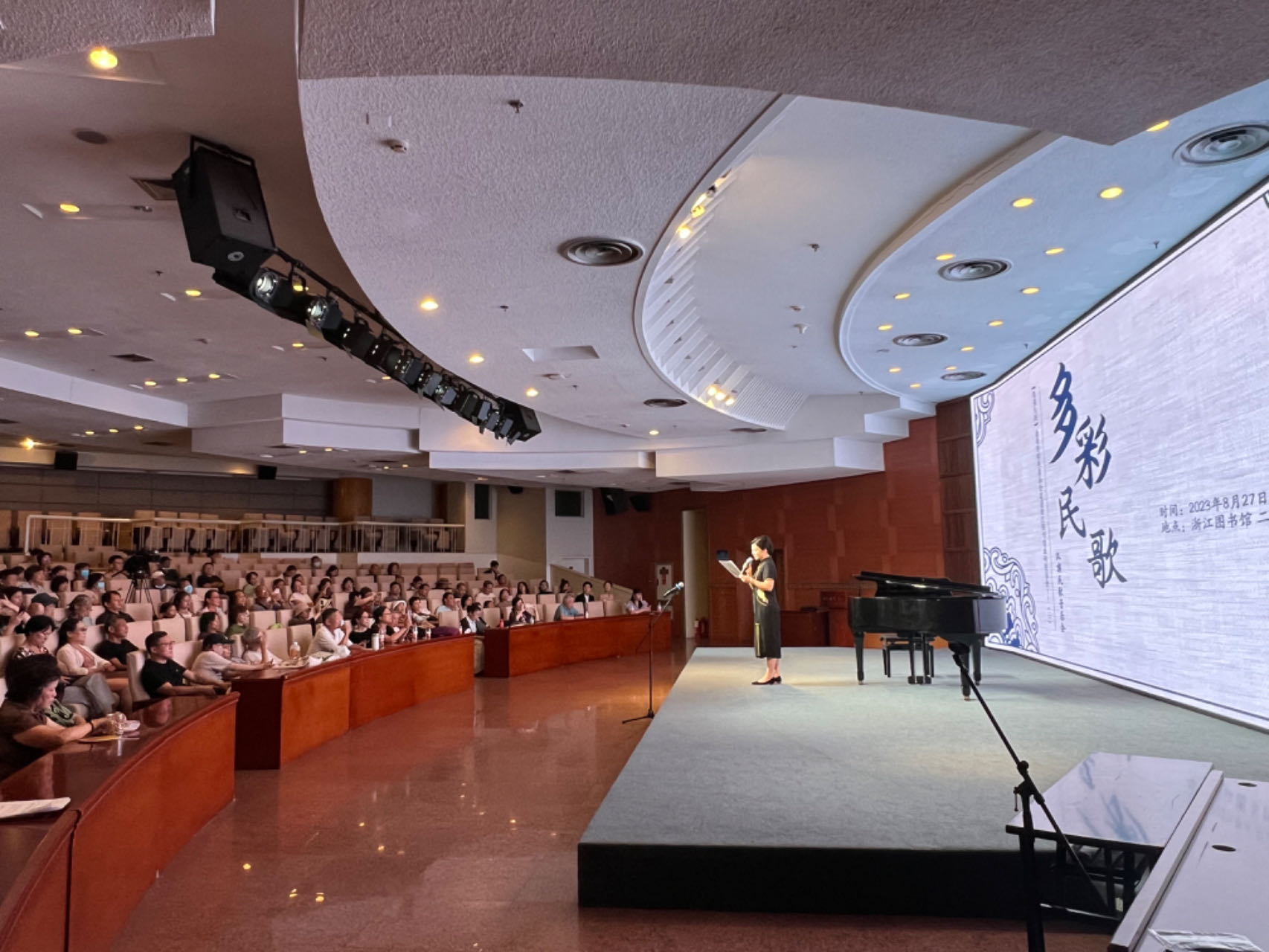2023年8月27日下午14:00在浙江图书馆二楼报告厅举办了“【多彩民歌】——汉族民歌音乐会”。本场音乐会为浙江音乐学院与浙江图书馆联合主办的“美美与共”——金美玲师生音乐会走进浙江图书馆系列音乐会的第三场音乐会。