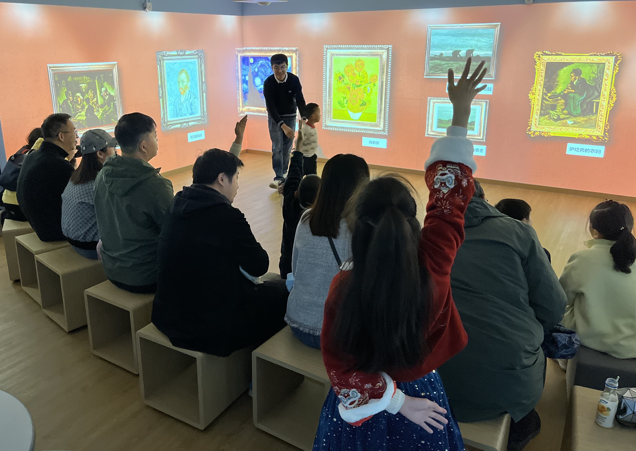 毕加索曾说过:“每个孩子都是艺术家。”星空的梦幻璀璨,杏仁花的静谧安然,让小朋友和家长沉浸其中。欣赏和解读梵高的经典画作后,小朋友和家长们在悠扬的音乐声中,共同尝试自画像创作。光影交织间,艺术的种子悄悄种下。