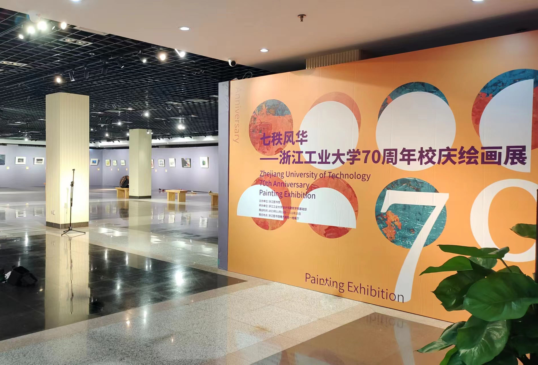 2023年11月11日—11月15日,由浙江图书馆主办,浙江工业大学设计与建筑学院基础部承办的“七轶纷华——浙江工业大学70周年校庆绘画展”在浙江图书馆曙光路馆展厅展出。今年是浙江工业大学建校70周年,陈丹、张碧云、孙净芳、彭鲲、姚华、沈克、张留峰、廖晓航等十几位设计与建筑学院的老师们,怀着喜悦的心情,经过半年的准备,用他们手中的画笔,画出了心中沉甸甸的感激和喜悦,通过画作老师们表达了对浙江工业大学的美好祝福。