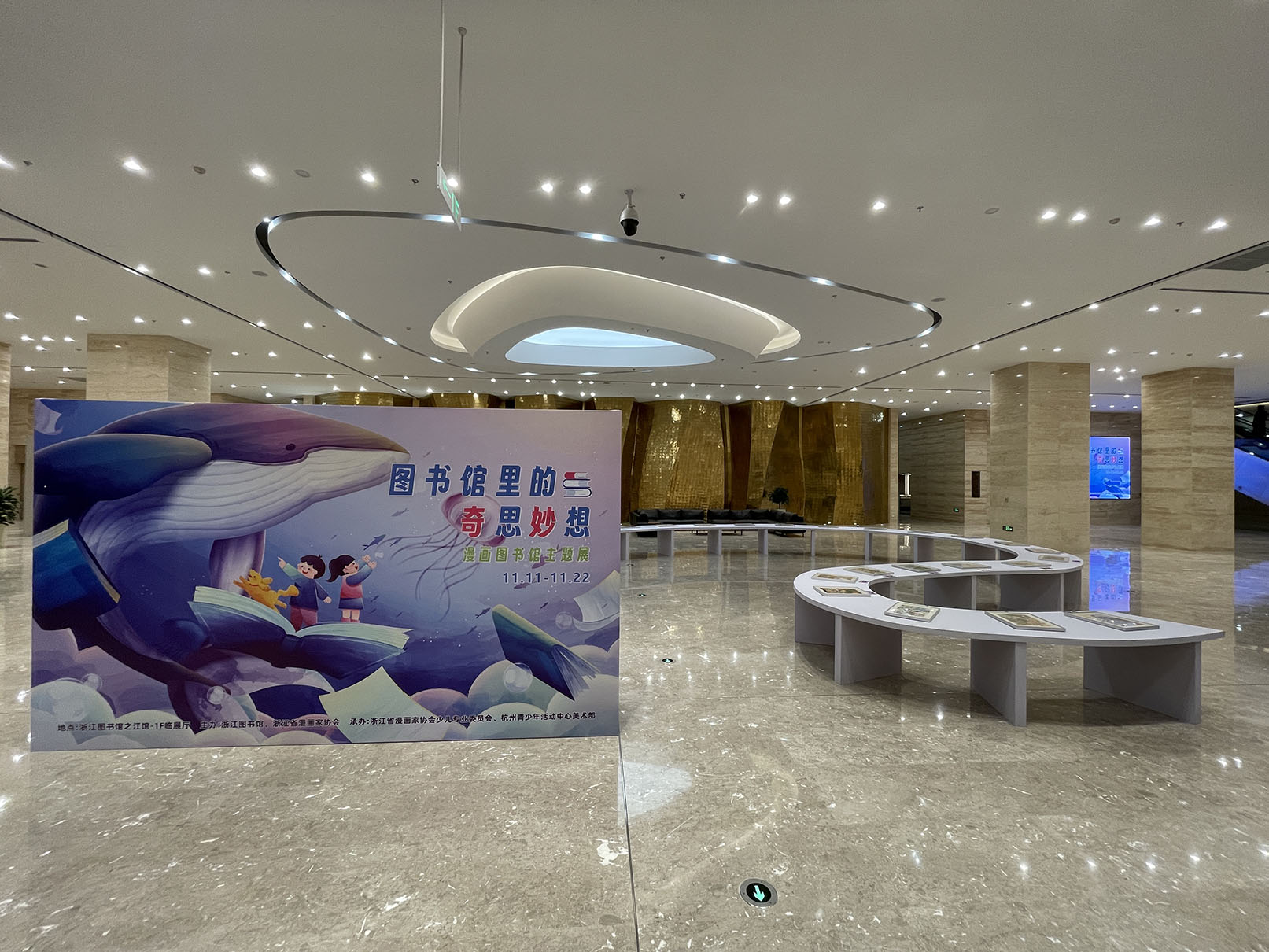 2023年11月11日至11月22日,由浙江图书馆、浙江省漫画家协会主办,浙江省漫画家协会少儿专业委员会、杭州青少年活动中心美术部承办的“图书馆里的奇思妙想——漫画图书馆主题展”在浙江图书馆之江馆展出,本次展出的作品全部出自18岁以下的少年儿童之手。