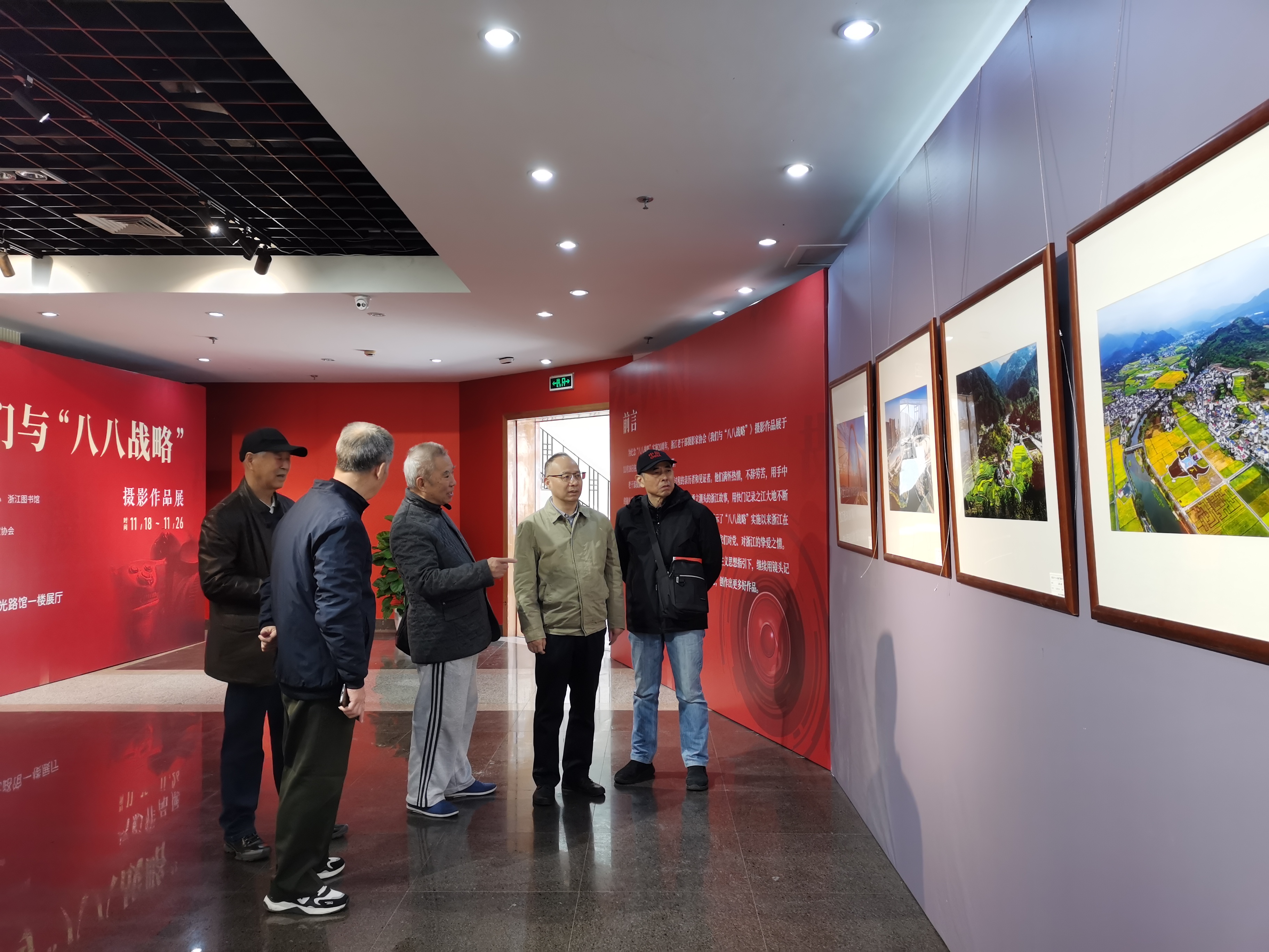 2023年11月18日至11月26日,由浙江老干部活动中心、浙江图书馆主办,浙江老干部摄影家协会承办的我们与“八八战略”——摄影作品展在浙江图书馆曙光路馆一楼展厅展出。88幅摄影作品以整齐的队列展示在人们眼前,给人强烈视觉震撼的镜头语言诉说着浙江在“八八战略”指引下的精彩蝶变。