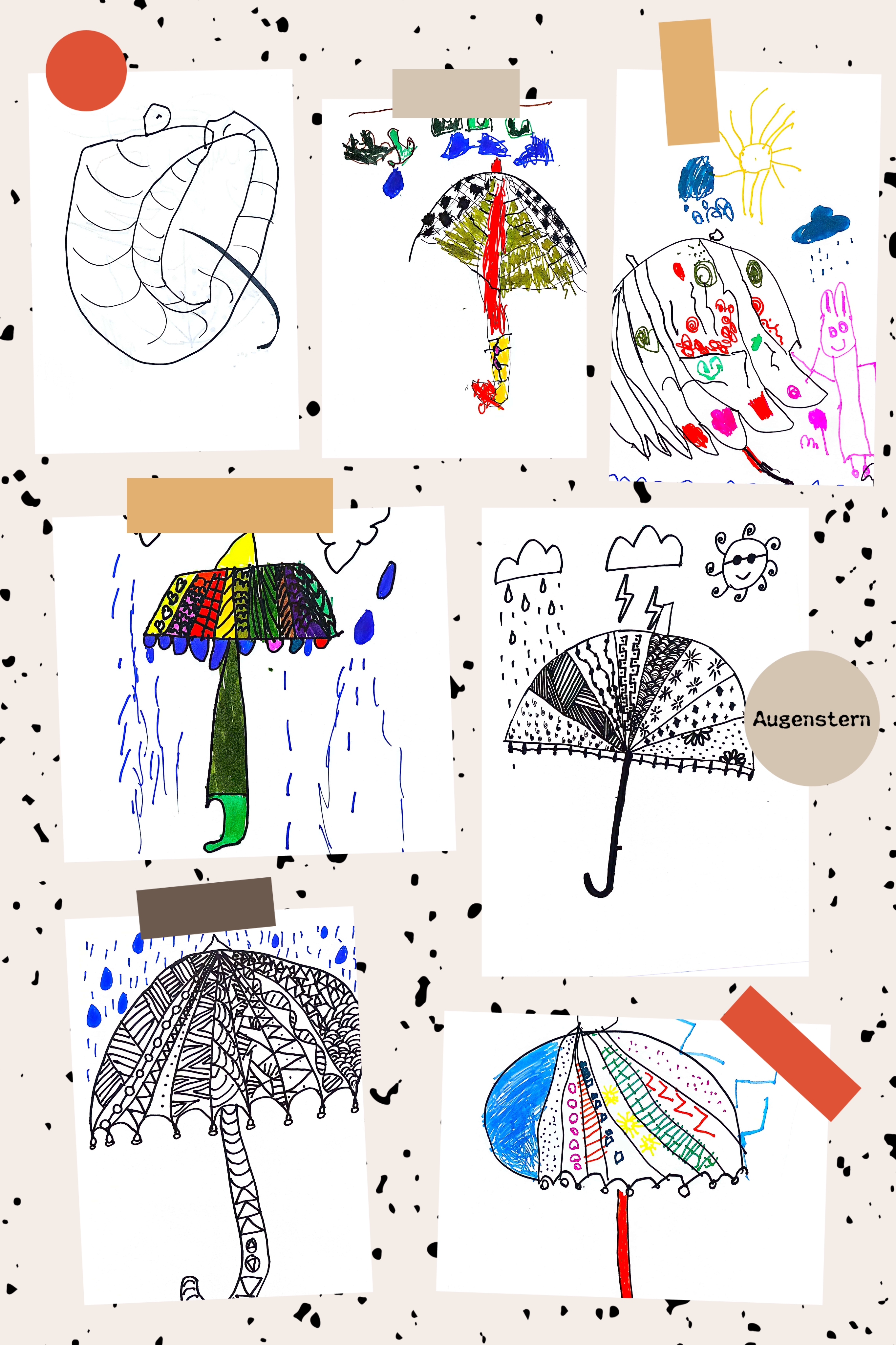 参与活动的小朋友们认识了绘本故事中的小蘑菇这把小雨伞后,还化身为小小雨伞设计师。他们在活动中充分发挥了创造力和想象力,设计出了自己专属的小雨伞!