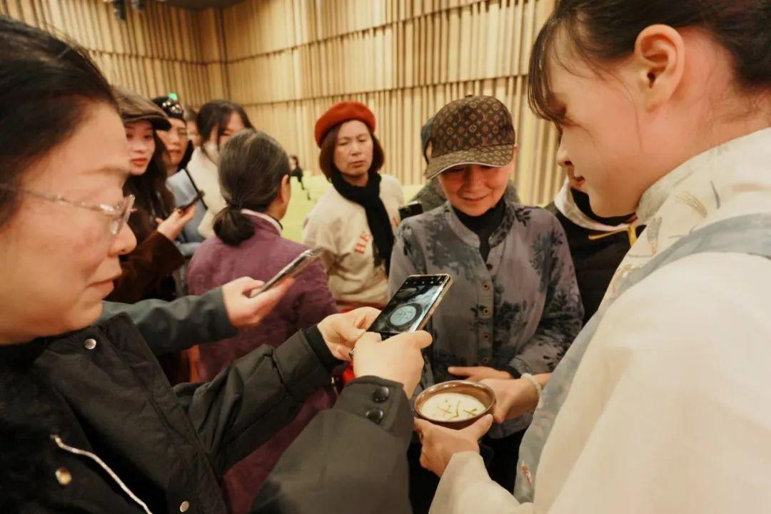 现场还有茶艺师表演南宋点茶,并在茶汤上写出“茶”字,引得现场参与者争相拍照。