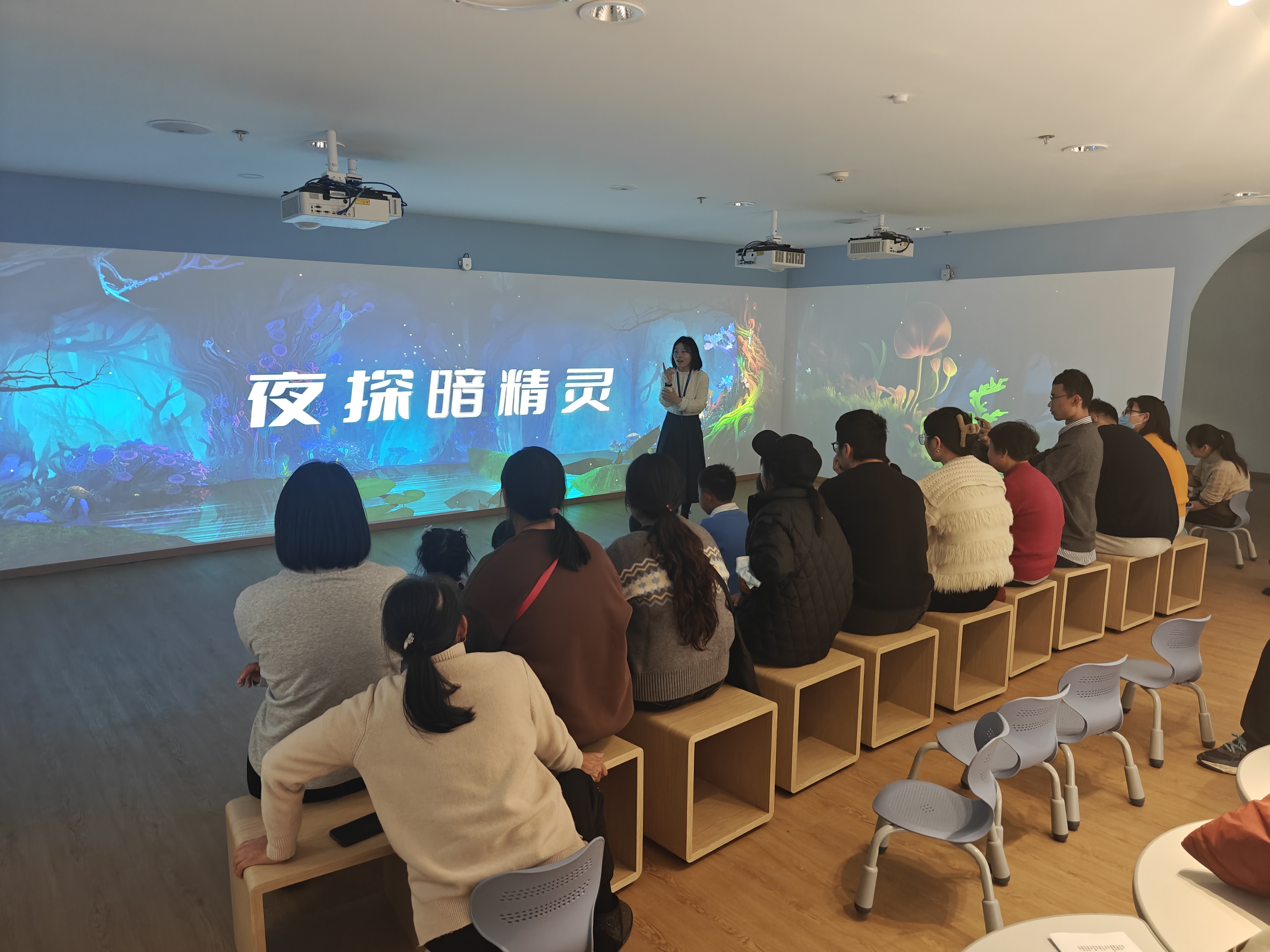 2023年12月30日和31日下午14时,浙江图书馆文献借阅部举办了2场主题为《夜探暗精灵》沉浸式亲子阅读体验活动,近50位幼儿及家长到场,开展生物知识的沉浸式科普体验。