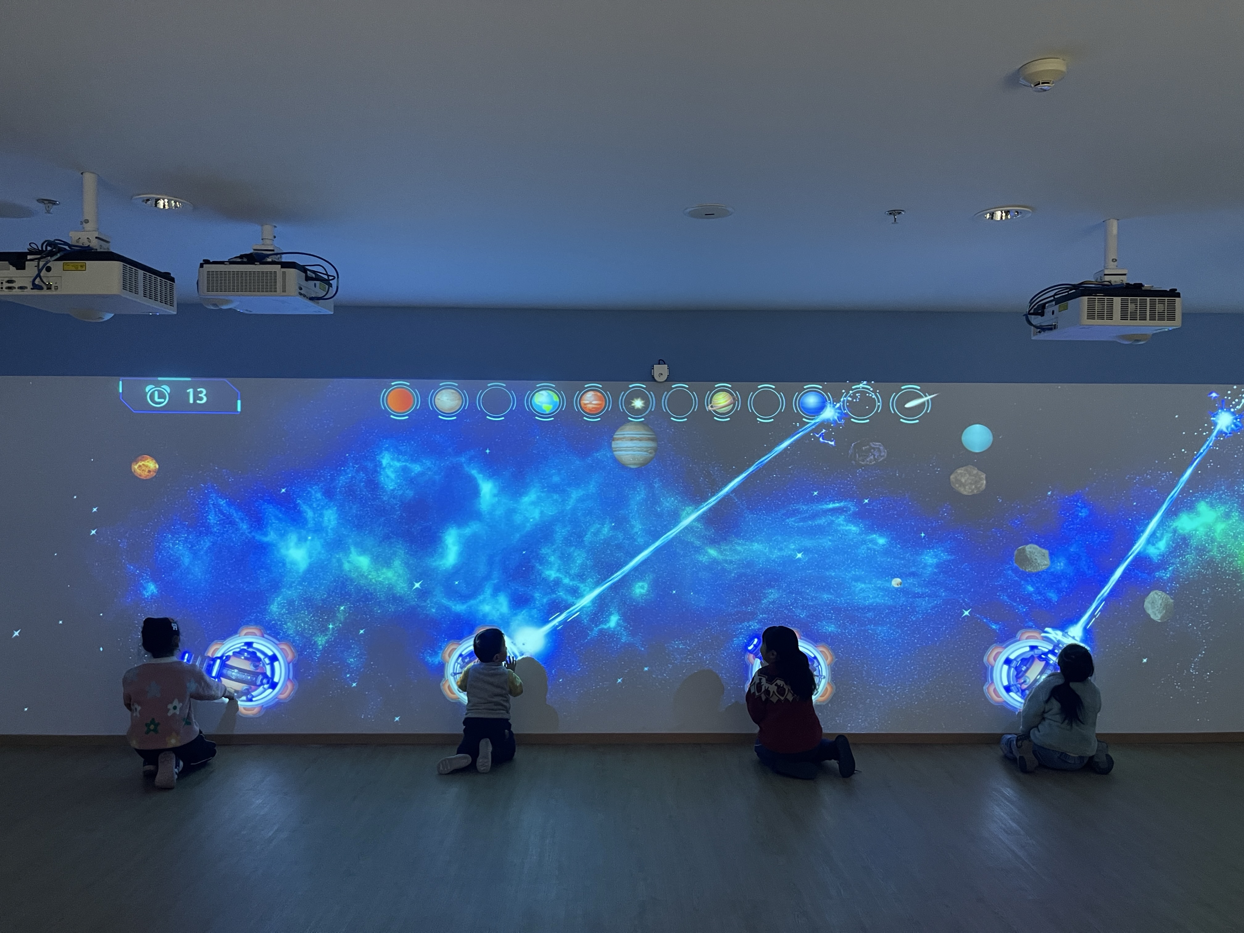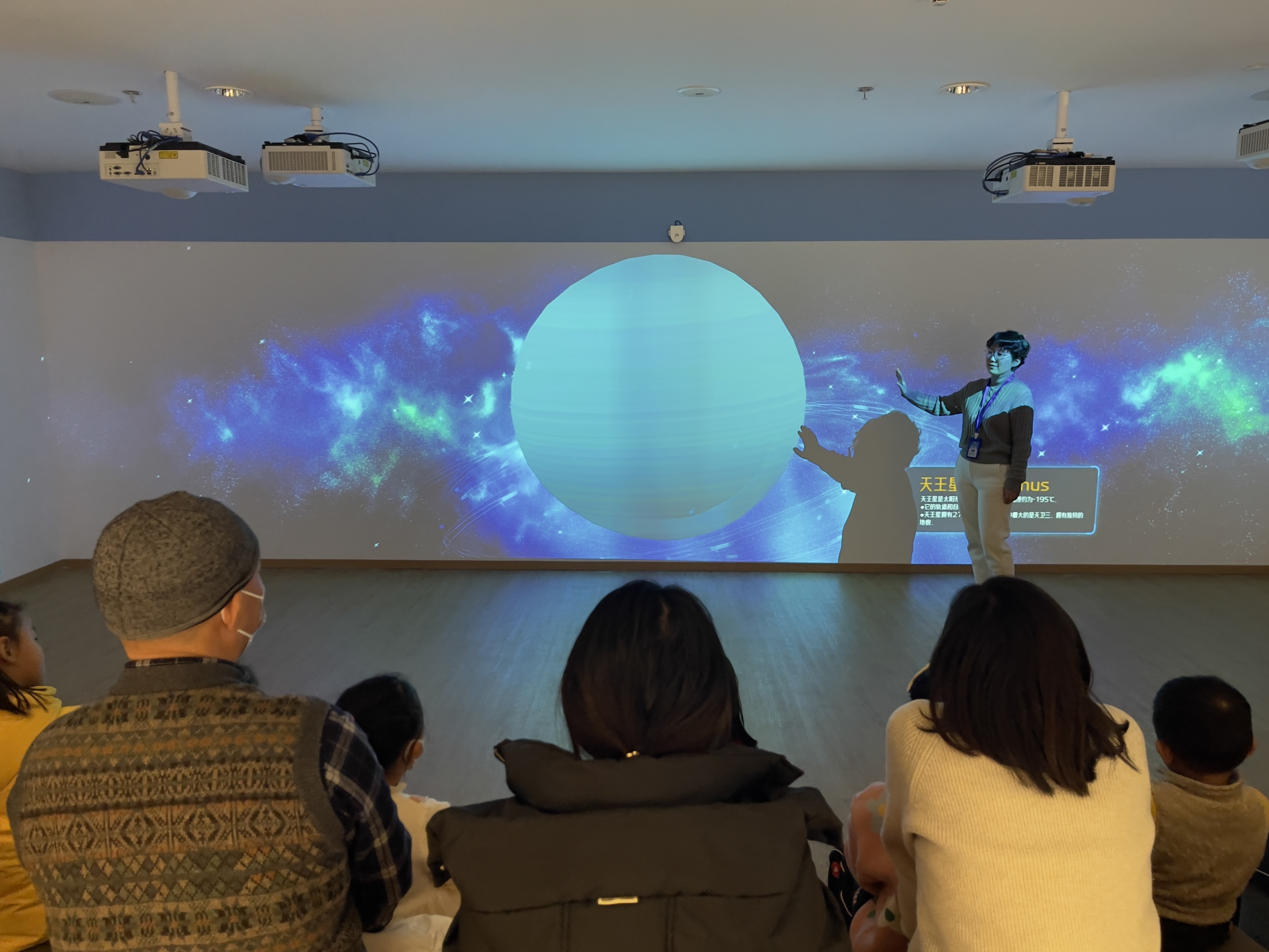 本周的活动主题是《探索太阳系》,通过互动屏幕实景投影的3D模型,结合视听效果,全方位地展示了太阳系的神秘与奥妙。活动过程中,我们以八大行星与太阳的距离为顺序,从近到远,逐一向参与者介绍了这些行星。小读者们通过互动游戏,收获了一次快乐且生动的行星“捕捉”体验。