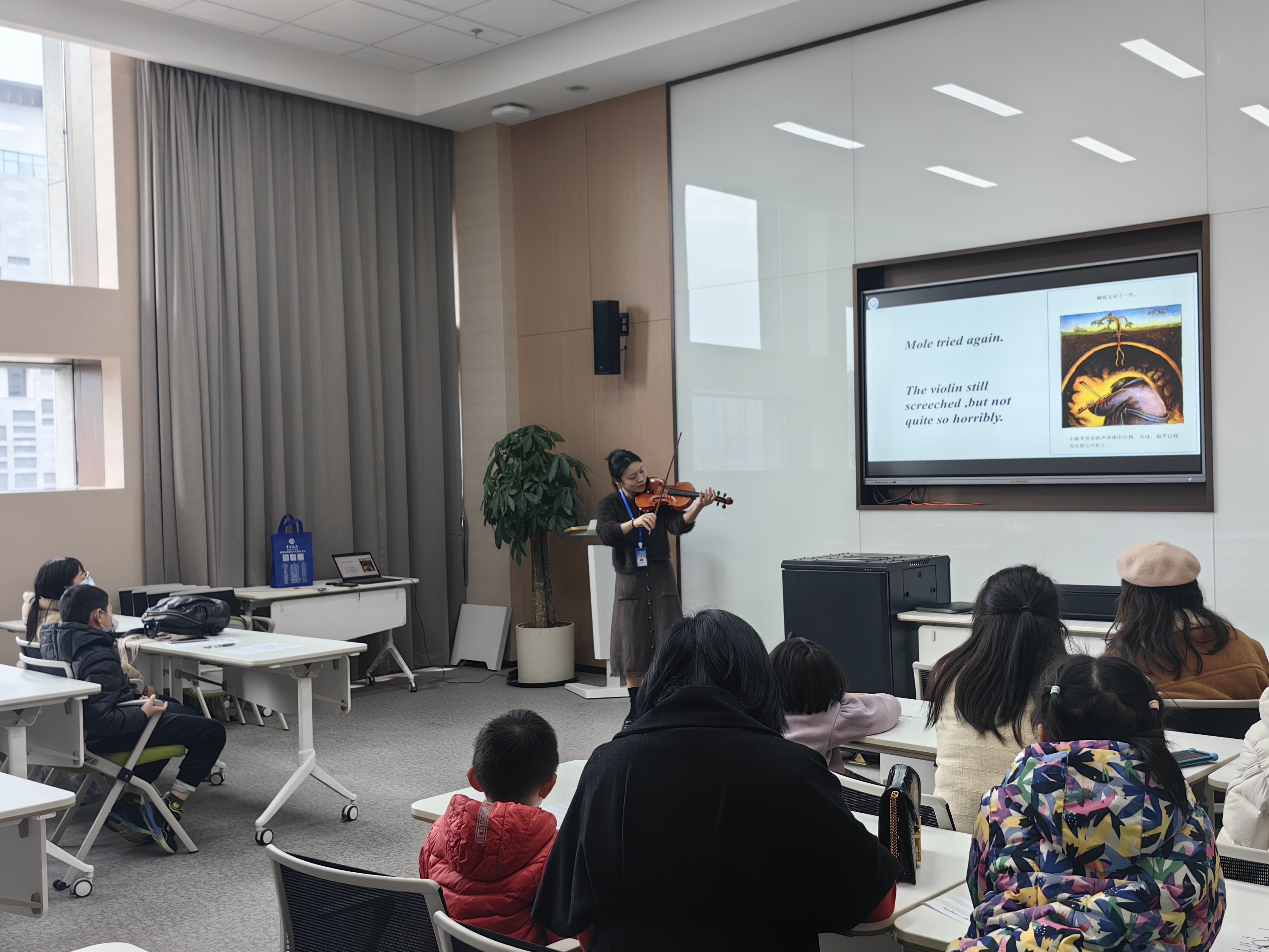 2024年2月17日上午,近30位读者前来浙江图书馆之江馆交流空间,参与David McPhail(大卫·麦克菲尔)绘本Mole Music(《鼹鼠的音乐》)的双语亲子阅读活动。