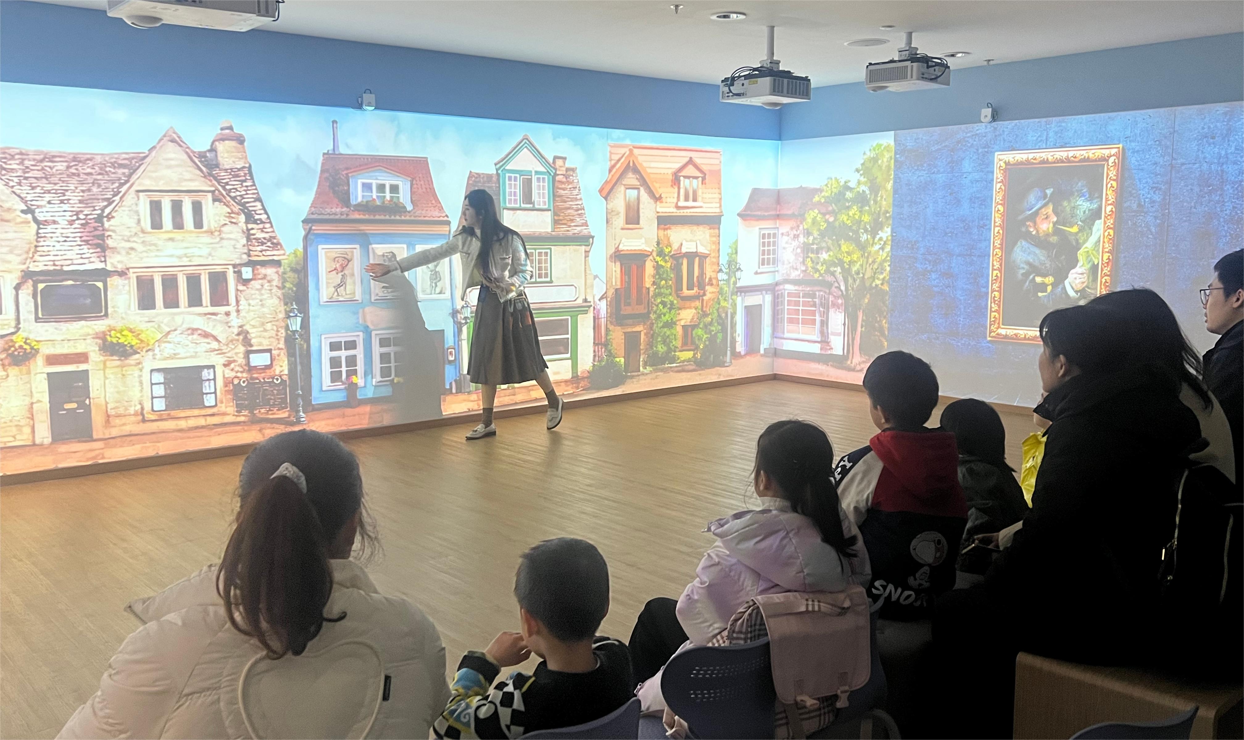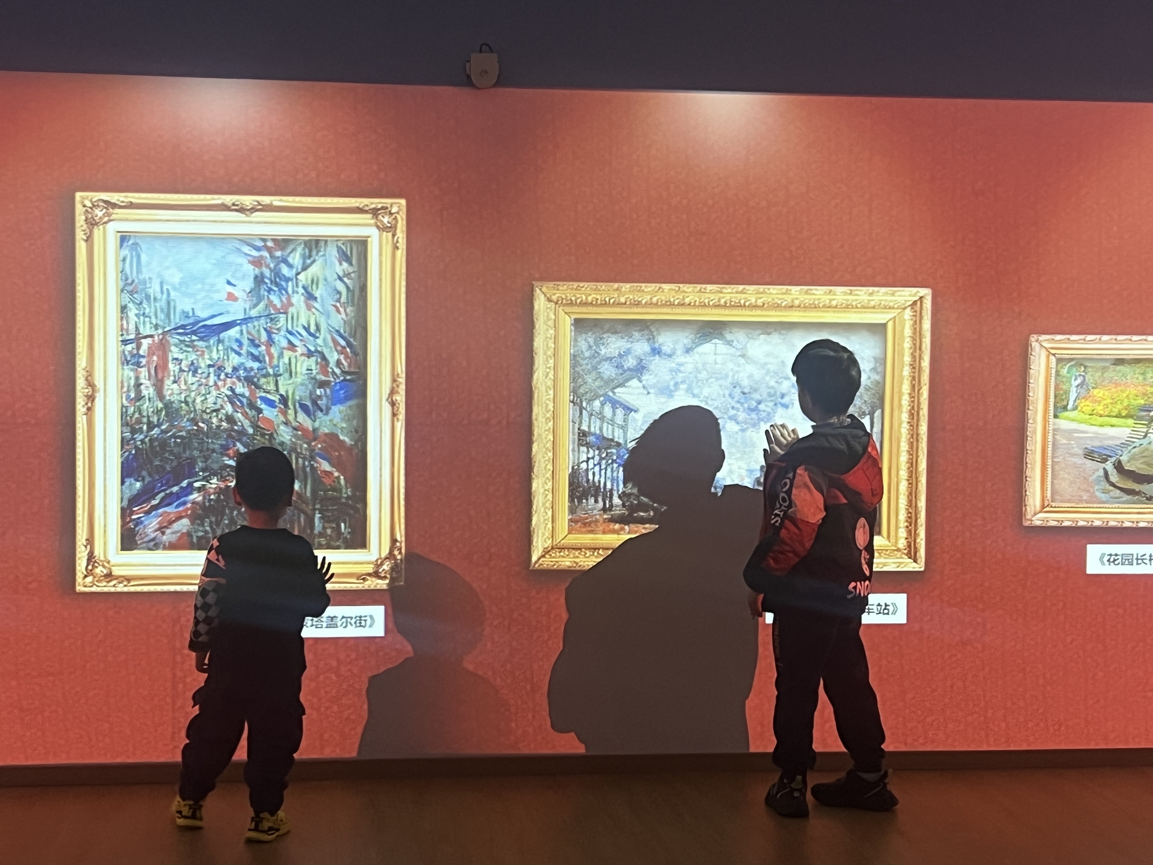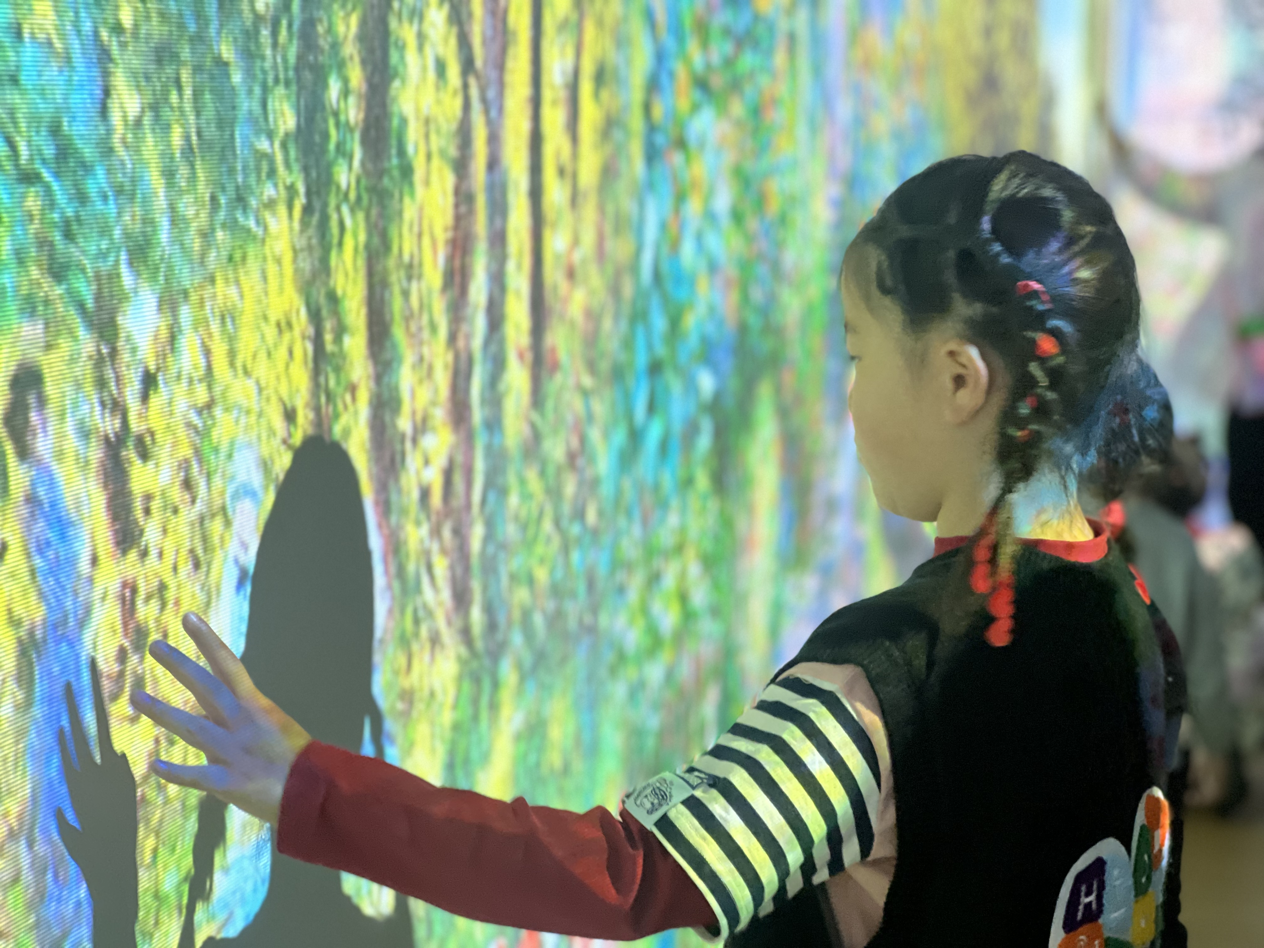 在互动环节中,结合视、听、触等多重感官体验,孩子们仿佛置身莫奈用色彩和笔触凝固的时间和空间,与大师画作中的人、景、物玩耍互动,在光与影的色彩描绘中,沉浸式窥探画作的魅力。
