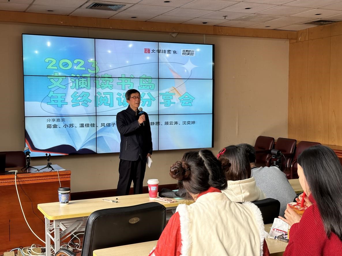 2023年最后一个周六的下午,浙江图书馆曙光路馆的集体视听室里,每年一度的读书人饕餮盛宴——文澜读书岛年终阅读分享会正在热热闹闹地进行。几十位书友聚集在一起,聆听8位嘉宾分享推荐他们在2023年里读过的最有意思的好书。