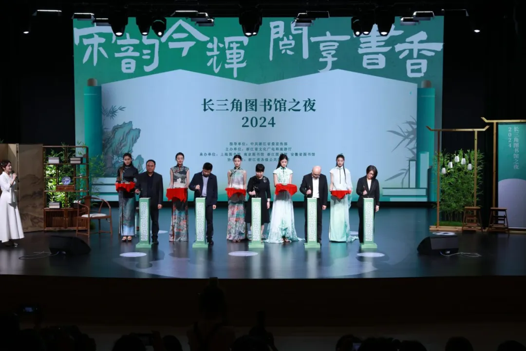 4月20日晚,为迎接第29个世界读书日,“宋韵今辉 阅享书香”2024长三角图书馆之夜以浙江图书馆之江馆为主会场成功举办。这也是浙江图书馆之江馆首次夜间开放,从之江文化中心出发,由上海图书馆、南京图书馆、安徽省图书馆依次晒出珍贵馆藏,联动浙江省各级公共图书馆,共同点亮长三角的夜读氛围。这是一场集中式美学、宋韵风雅、优质图书荐赏于一体的“书香视觉盛宴”,沉浸式、全景式为读者呈现宋画之雅、宋词之妙、宋乐之风、宋学之意。