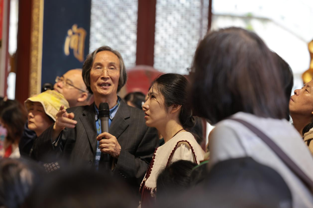 4月20日,一个典型的春日周末,杭州灵隐景区照旧人潮汹涌。在熙来攘往的游客中,一位头发花白的老教授,带着一群人,在永福寺大雄宝殿前和法净寺圆通殿里,指指点点,说着什么。