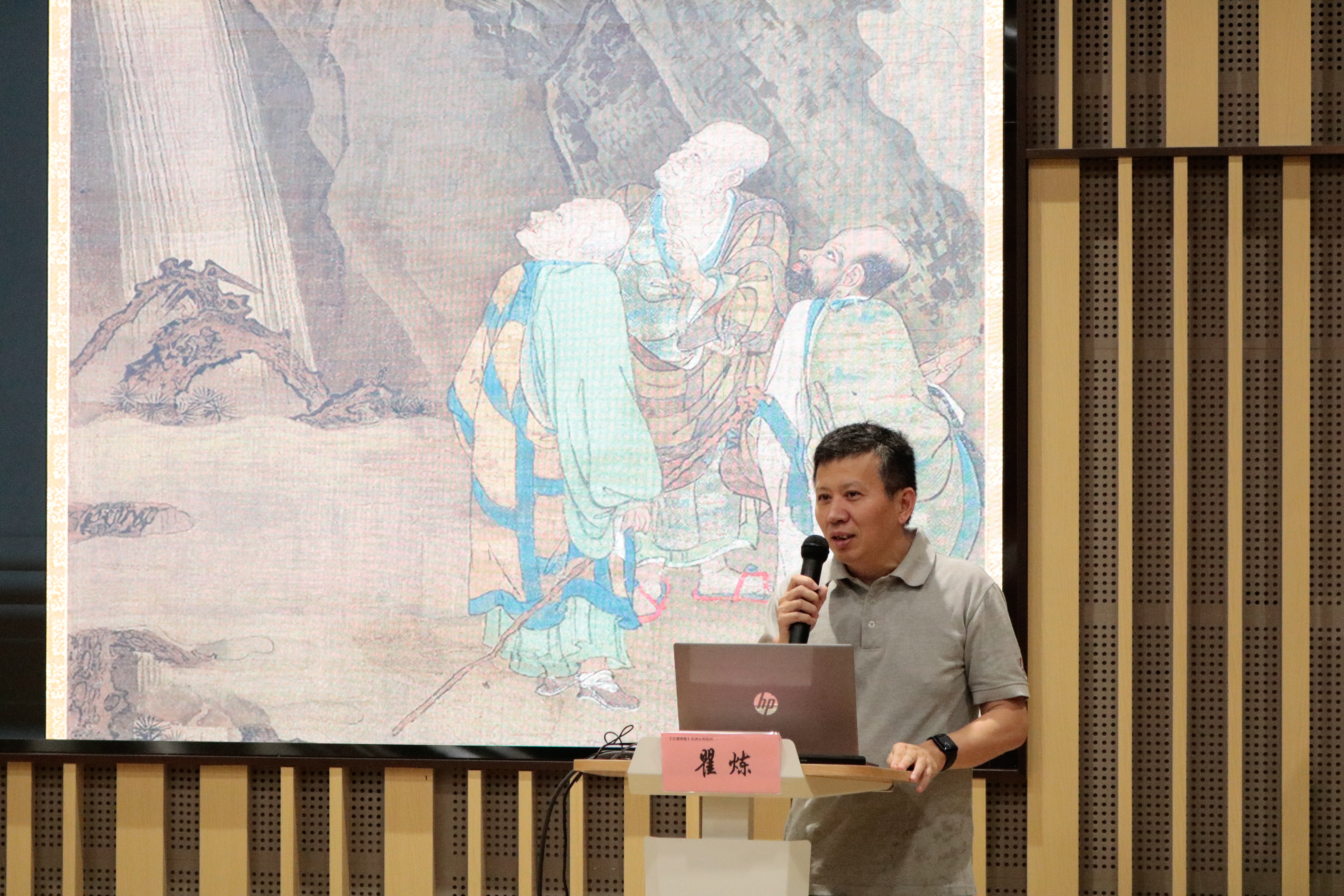 本次的讲座,瞿炼老师从南宋明州(今浙江宁波)讲起,明州因坐拥良港,为南宋重要的对外贸易口岸,与日本、高丽和南洋的海上贸易往来十分频繁。和明州当时较为程式化的外销佛画不同,惠安院《五百罗汉图》构思巧妙,取材广泛,内容丰富且贴近生活。瞿老师通过对《五百罗汉图》的创作思路、人物刻画、描绘细节的讲解,向听众展现了佛教历史事件、经典故事以及南宋江南佛教建筑、佛事活动、僧人日常起居等,反应了当时的社会经济、文化、宗教和风俗习惯。《五百罗汉图》流传至日本后,对日本的绘画艺术产生了巨大的影响。室町时代的画僧在充分吸取和继承南宋画作的基础上,开拓了日本画的风格、样式。