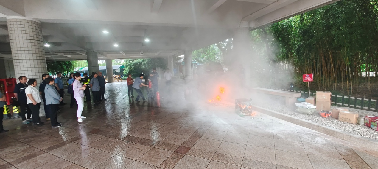 讲座结束后,全体员工转移至馆外进行实战演练。在专业消防员的指导下,演练模拟了之江新馆二楼少儿阅览室和曙光路馆区二楼报告厅突发火情,消控中心接到消防主机报警信号后,消控中心值班人员立即通知巡逻岗前去查看并请求微型消防支援,消防人员穿上防护服并携带消防设备立刻前去火情点支援,迅速抬出受困人员至空地处,进行现场及时抢救。随后,消防员演示了如何正确使用灭火器灭火,并邀请员工亲自操作体验。员工们踊跃参与,轮流拿起灭火器,按照“提拔握压”的要领,成功扑灭了模拟火源。通过实际操作,员工不仅掌握了灭火器的使用方法,更增强了面对火情的自信心。