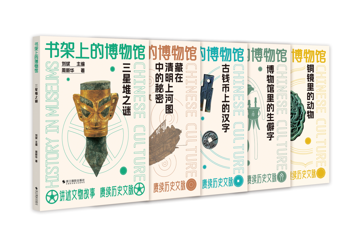 随后又进行了“书架上的博物馆”系列新书的分享。博物馆里的文物浩如烟海,涵盖的历史文化又博大精深,如何在自己观展或带孩子参观时能够读懂文物、了解文物背后的多重信息?“书架上的博物馆”丛书邀请文博界、收藏界专家撰稿,以通俗平易的语言,讲述博物馆馆藏文物故事和某一专题方面的相关知识。第一辑分别从博物馆展览时常遇到的生僻字、三星堆的发现及诸多未解之谜、如何细读《清明上河图》、古代铜镜上有哪些神奇的动物、文字在古钱币上的演变5个角度,配以大量图片,讲述博物馆里潜藏的历史文化知识,是一套突破时空限制的“纸上博物馆”。