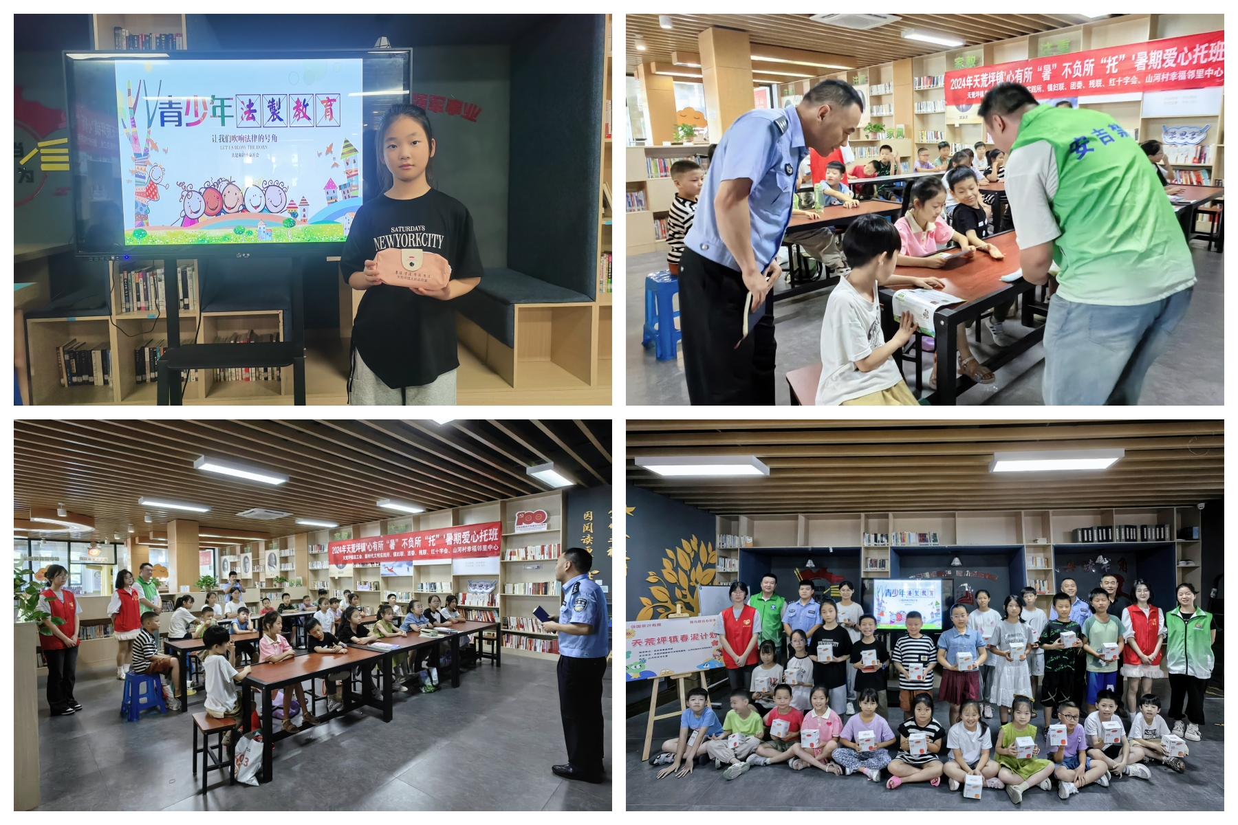 为了更好地服务朱溪镇学生以及留守儿童群体,“仙苗学堂”还提供为期一个月的暑期托班服务,开设基础学科辅导、绘画手工、安全教育等特色课程。本次活动不仅充实了孩子们的暑期生活,还帮助他们树立正确的法律观念,增强了自我保护意识和能力。