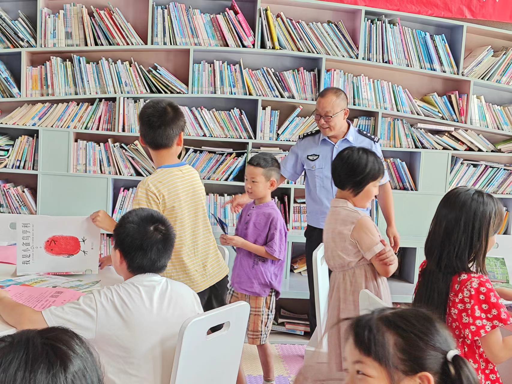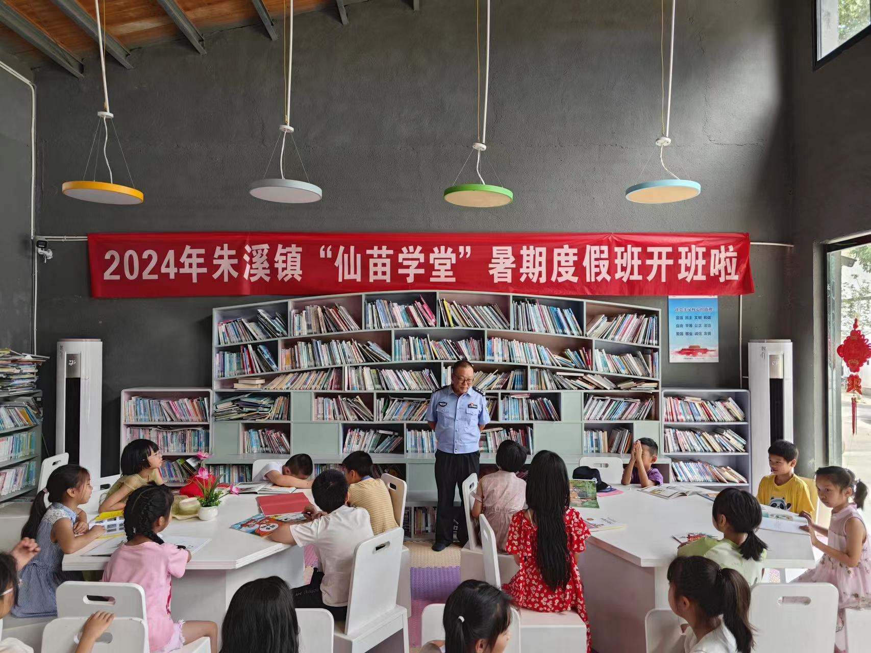 暑假期间,浙江图书馆仙居县朱溪镇少儿分馆开设“仙苗学堂”,邀请朱溪镇派出所民警为当地青少年儿童带来安全普法教育课堂,共三十余人参与。