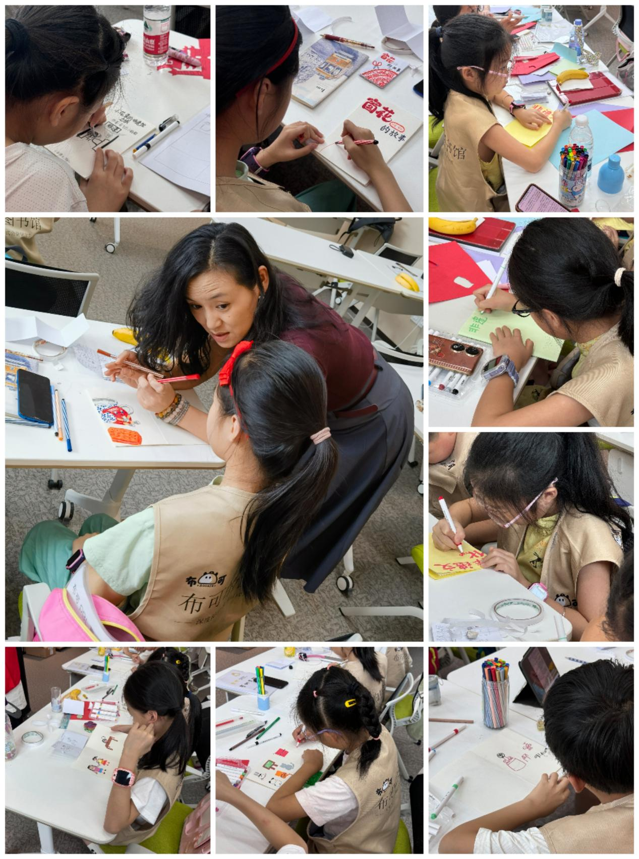 在接下来的日程中,孩子们深入浙江省非物质文化遗产馆,近距离感受传统文化的丰富与深邃。他们还学习了图书检索方法,为日后自主学习打下了坚实基础。第三天,孩子们在美术老师的指导下,将非遗文化元素融入绘本创作,展现了惊人的创意与才华。