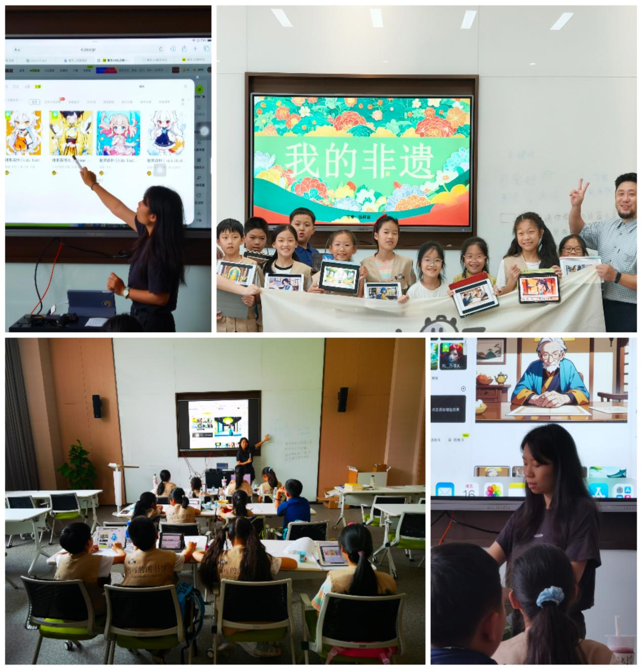 第五天,夏令营迎来了科技与艺术的精彩碰撞。在专业老师的指导下,孩子们学习了如何利用“文心一言”“堆友”等国产人工智能软件,通过文生图、图生图等方式,结合非遗文化和图书馆借到的书籍内容,创作出独特的AI绘本。这一过程中,孩子们不仅体验到了科技与艺术的独特魅力,还进一步激发了他们的学习兴趣和创造力。
