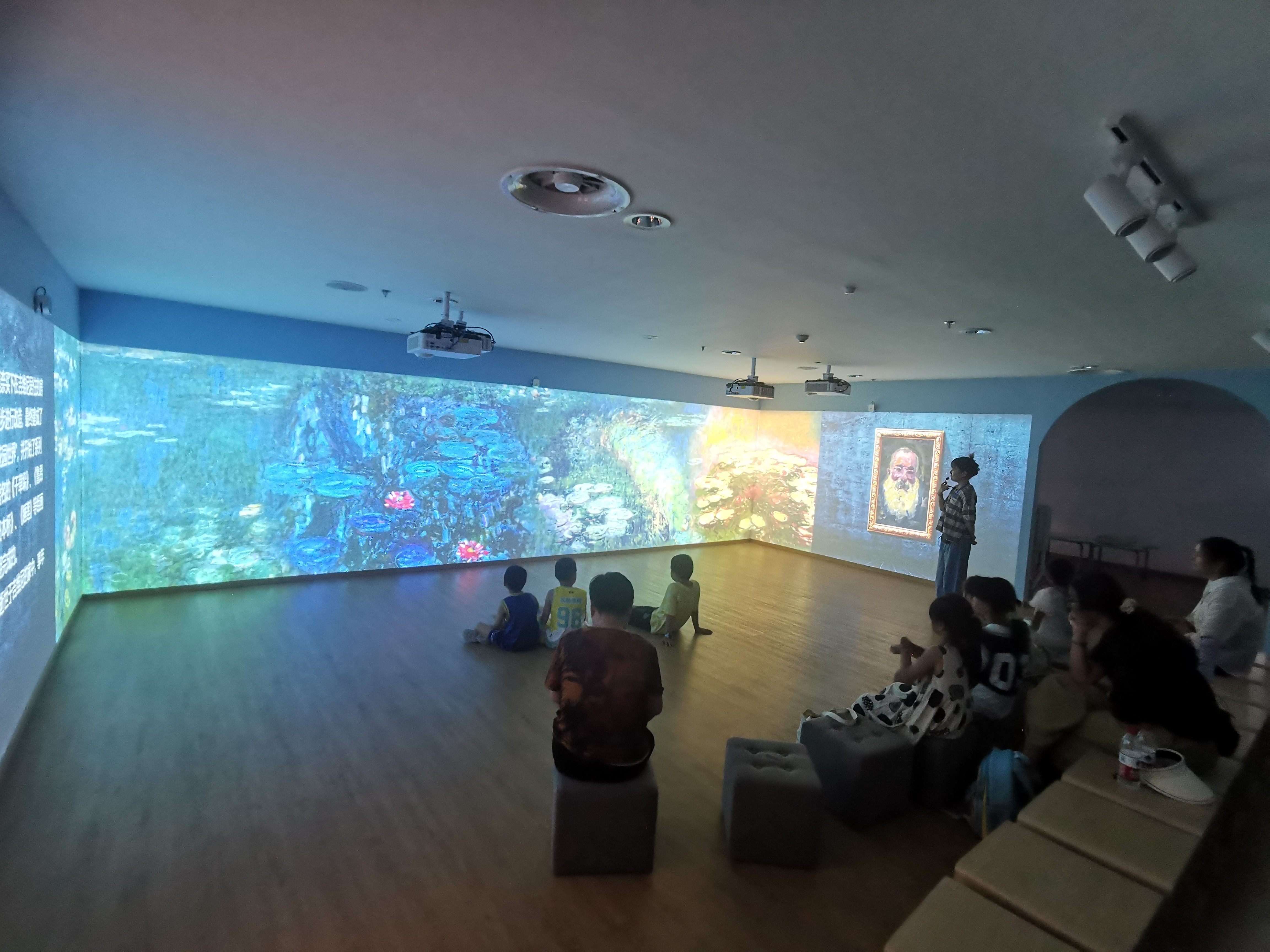走进莫奈的印象派世界,孩子们仿佛穿越至法国乡间,亲眼见证了大师笔下光影变幻的奇迹。《干草垛》、《鲁昂大教堂》、《日本桥》、《睡莲》……一幅幅经典作品让孩子们感受到了色彩与光影的魔力。主讲馆员的精彩讲解,让孩子们对莫奈的生平、作画风格有了更深的理解,艺术素养在不经意间悄然提升。