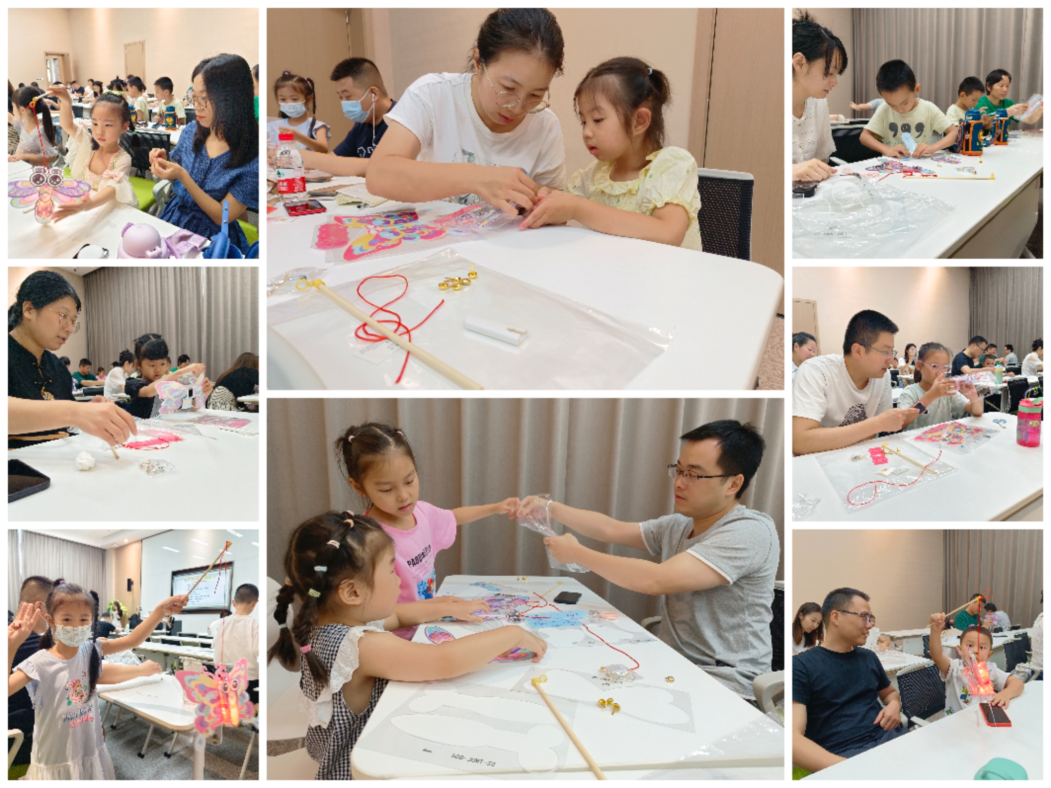 活动临近尾声之际,大家共同体验了中秋的节日习俗之一“玩花灯”。小读者与家长相互协作、分工有序,成功制作了属于自己的小蜻蜓灯和小蝴蝶灯。大家对自己的精心之作爱不释手,收获了与众不同的中秋体验。