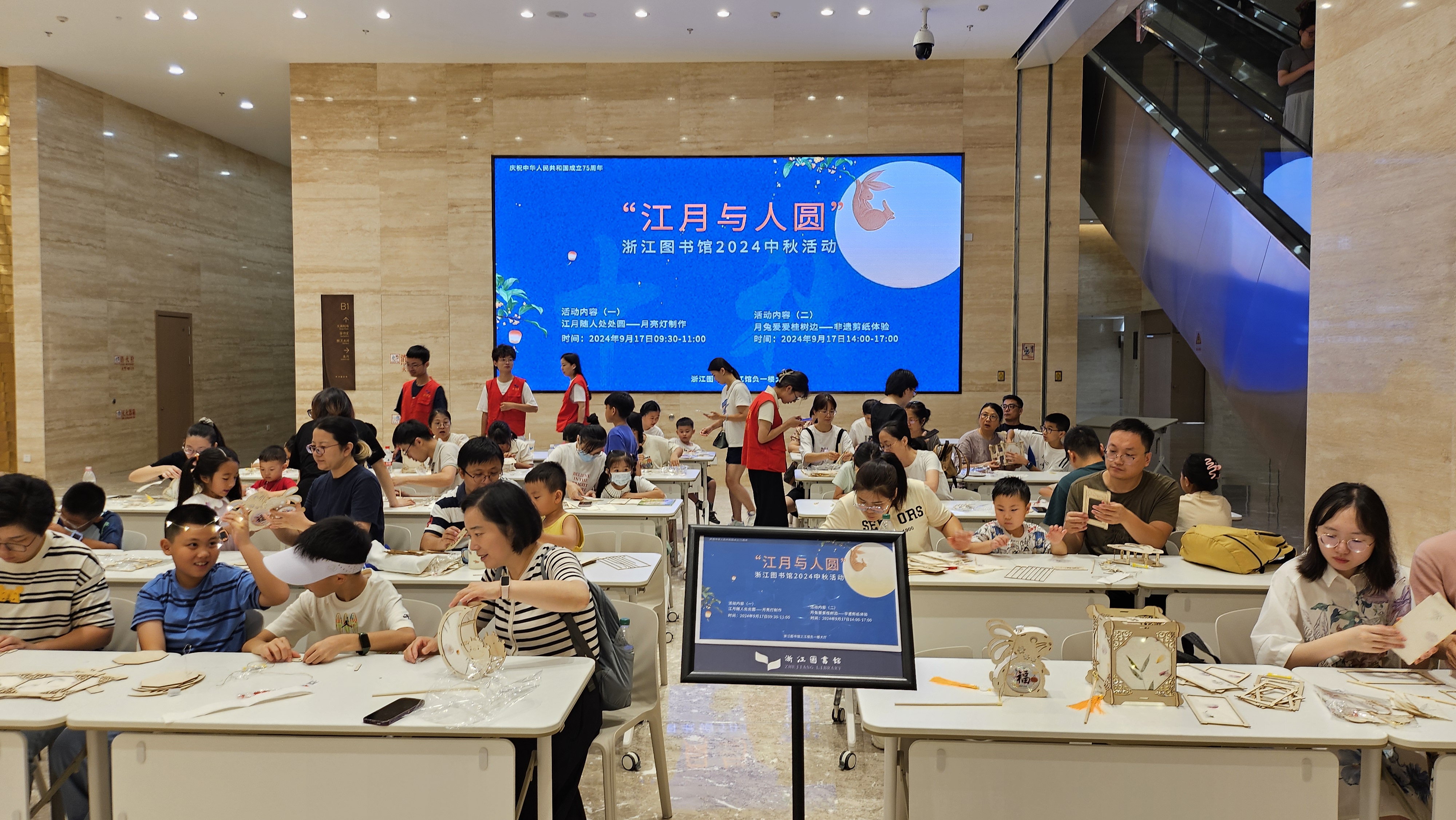 9月17日中秋佳节,也正值喜迎中华人民共和国成立75周年之际,浙江图书馆在之江馆举办文澜社会大课堂系列“江月与人圆”中秋国庆特辑活动吸引众多家庭参与,参与者们在浓厚的节日氛围中共享月满之时、感受家国温暖。