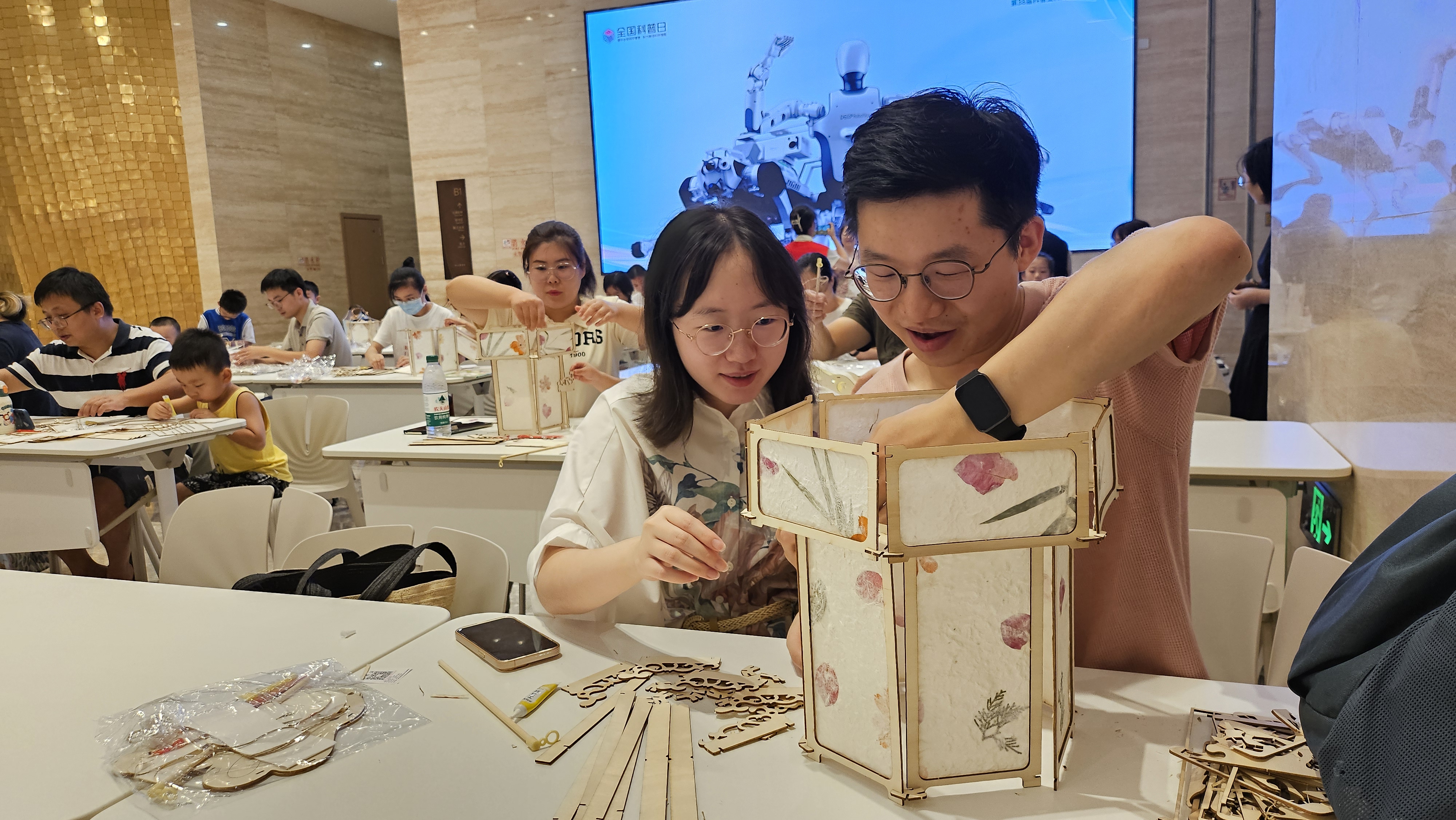 “我的灯笼做好啦!”“我的灯笼好看吗?” 一盏盏精致可爱的中秋主题灯笼不一会就呈现在大家眼前,打开小灯闪烁着鹅黄的光。活动期间人气不断,参与者中有总角孩童、年轻的情侣、亲子家庭,他们不仅用行动阐述了弘扬中华优秀传统文化的重要意义,还在交流中践行了培育文明和谐家风、传承良好家风的当代价值,让传统文化的种子在彼此心中生根。