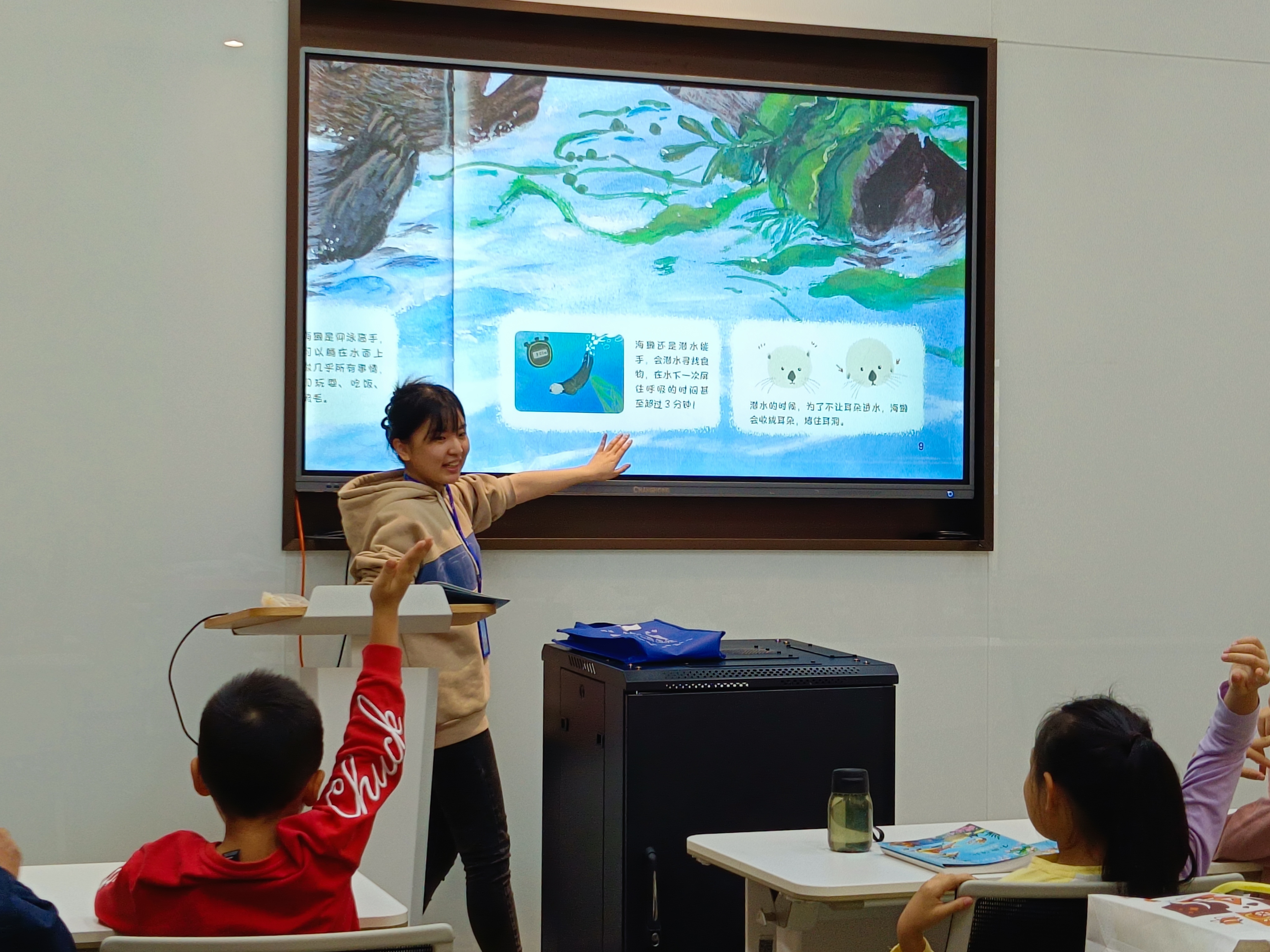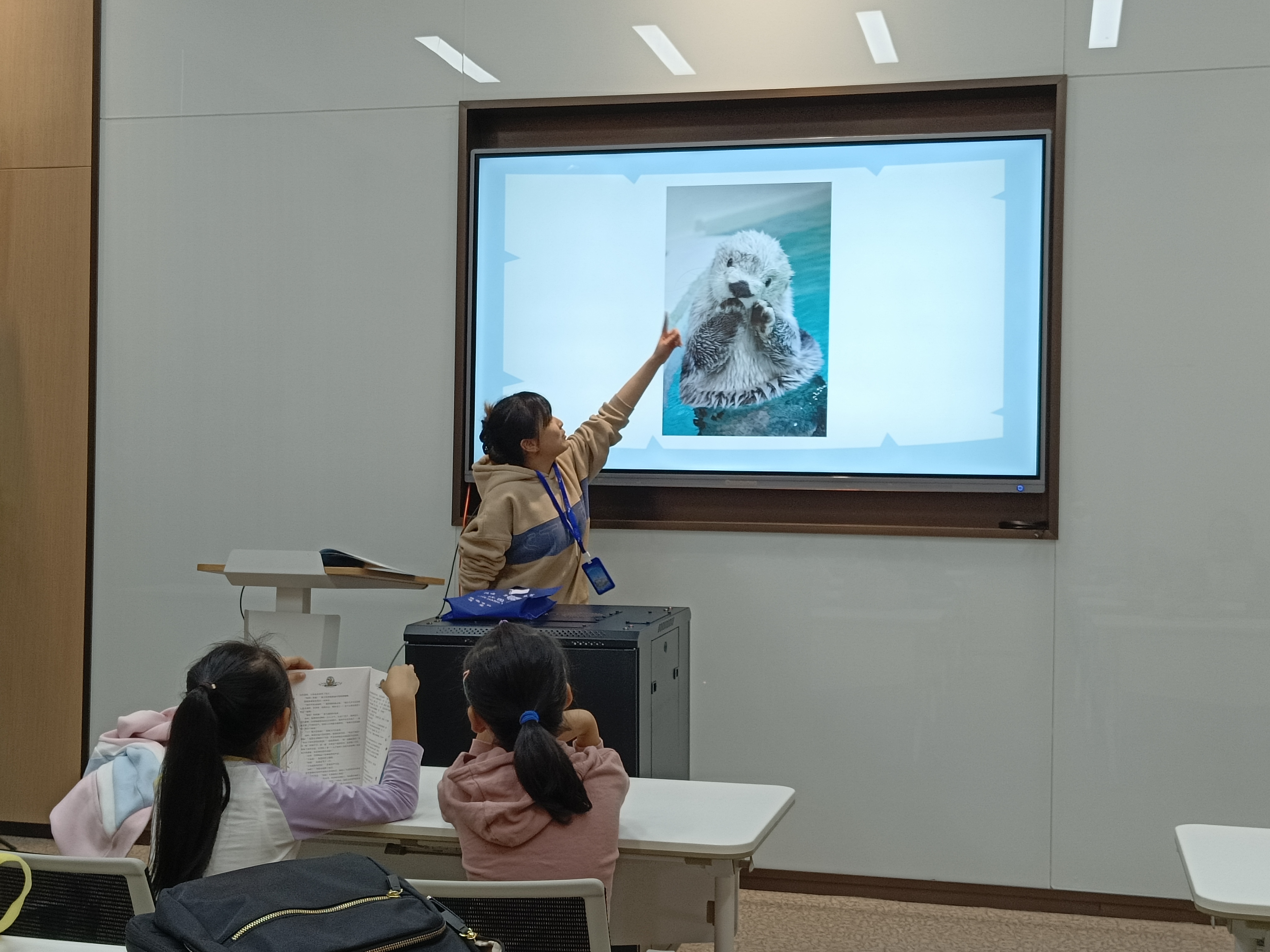 2024年10月20日上午,17位小读者及家长朋友齐聚浙江图书馆之江馆区交流空间(二),共同参与了本年度第10期“之识探索家”活动《冰海萌物——海獭》。活动跟随着绘本《海獭和冰海动物》中小海獭的视角,逐步揭开海獭和其他生活在冰海的动物的神秘面纱。
